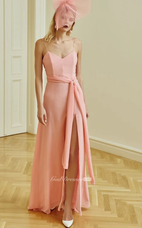 Floor-length Sleeveless Chiffon A Line Prom Dress with Sash