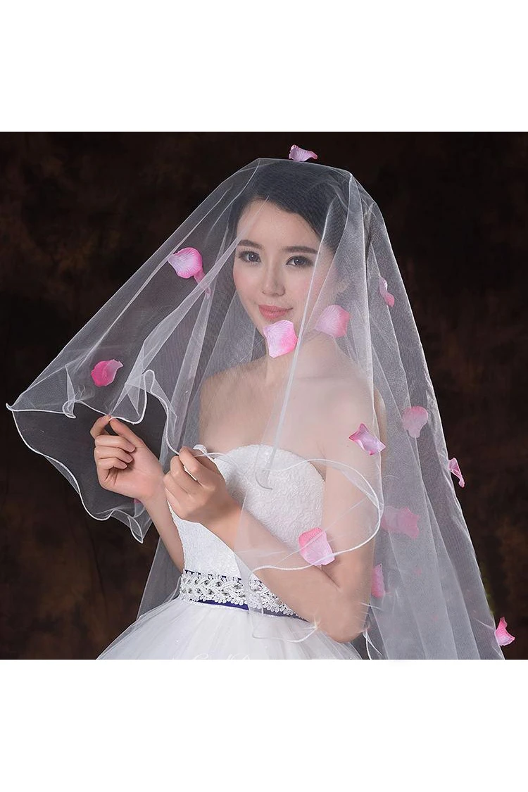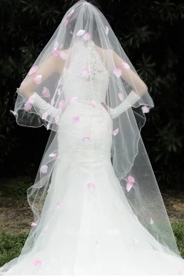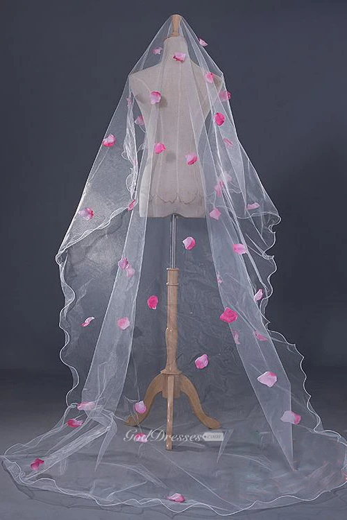 Korean Style 3 Meters Long Tailed Veil with Pink Petals