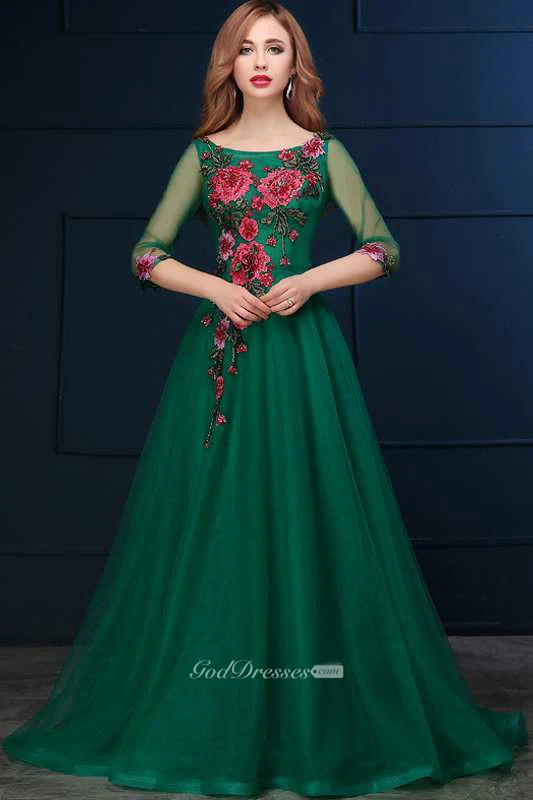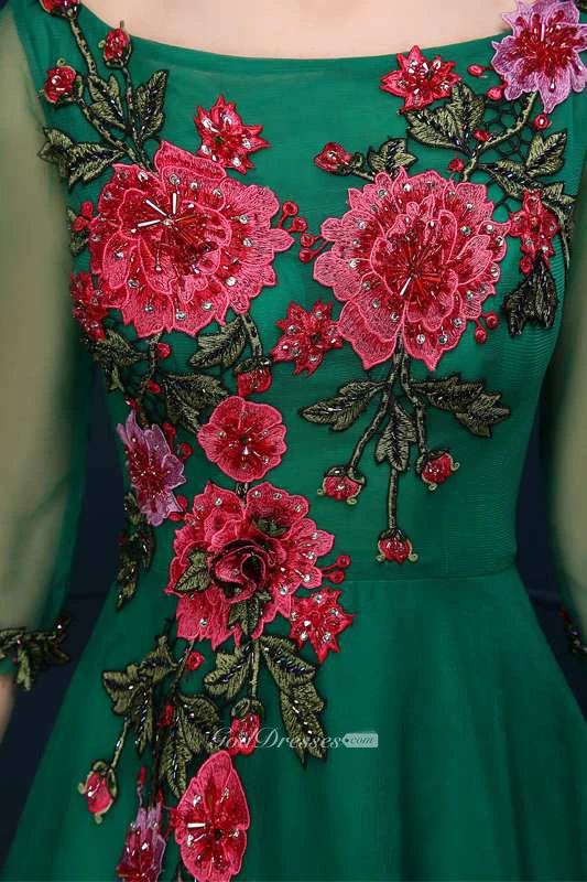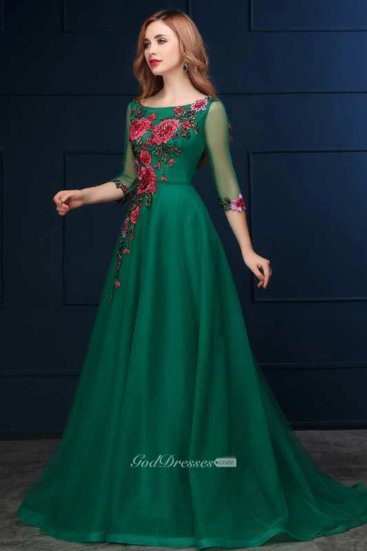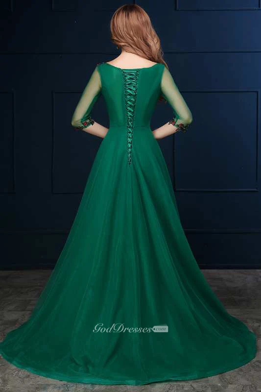 3-4 Illusion Sleeve Bateau Neck A-line Organza Dress