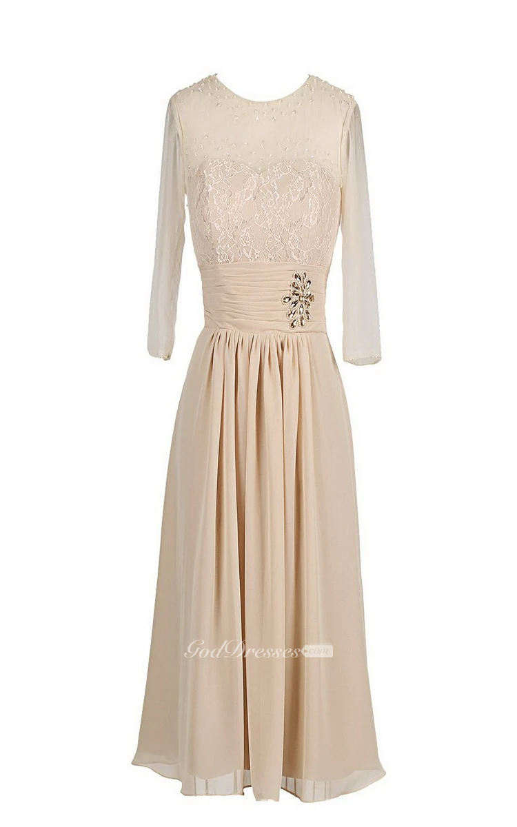 3-4 Sleeve Dress With Illusion Sleeves and Appliques
