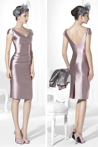 3-4-Sleeve Jacket Knee-Length Satin Prom Dress With Appliques And Split Back