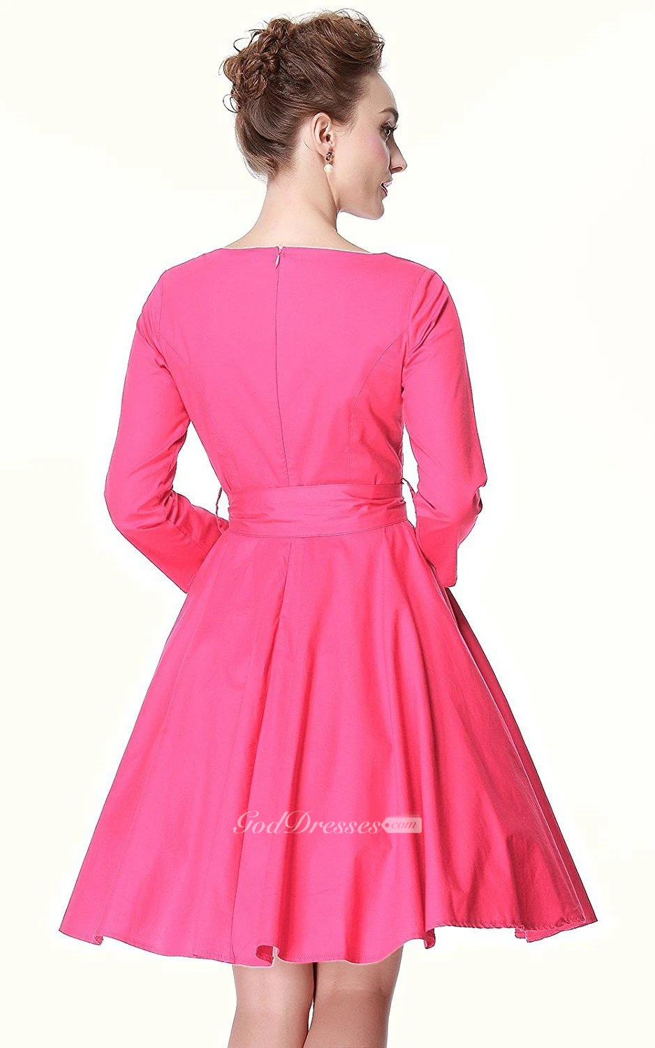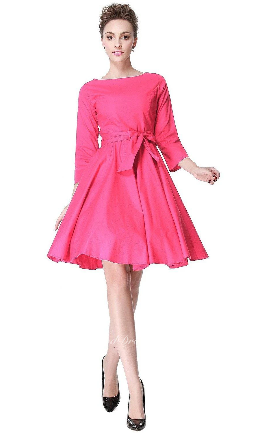 3-4 Sleeve Knee-length Dress with Bow Waist