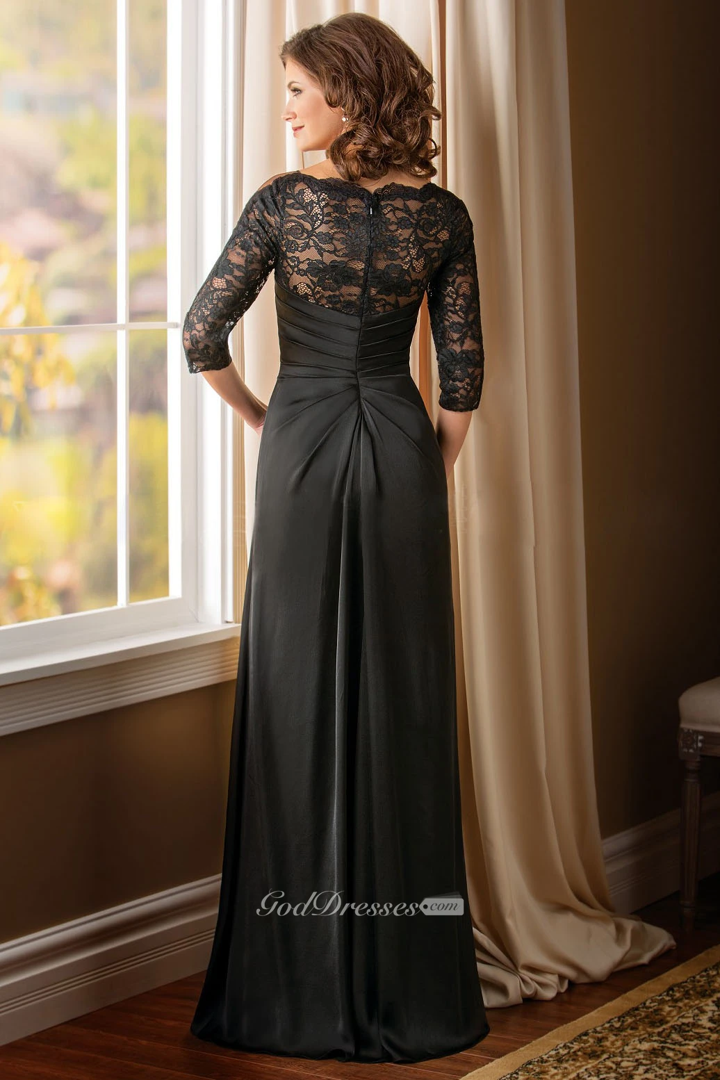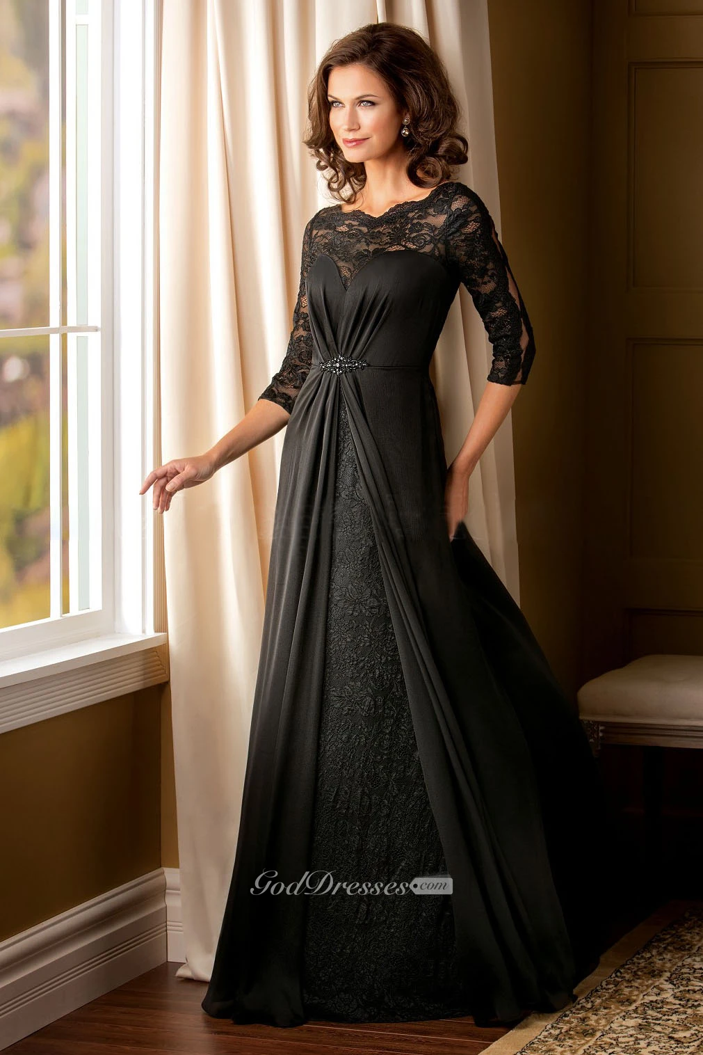 3-4 Sleeved A-Line Mother Of The Bride Dress With Beadings And Illusion Lace Style