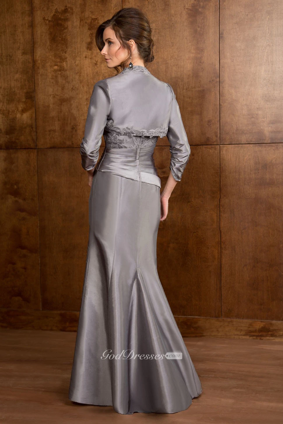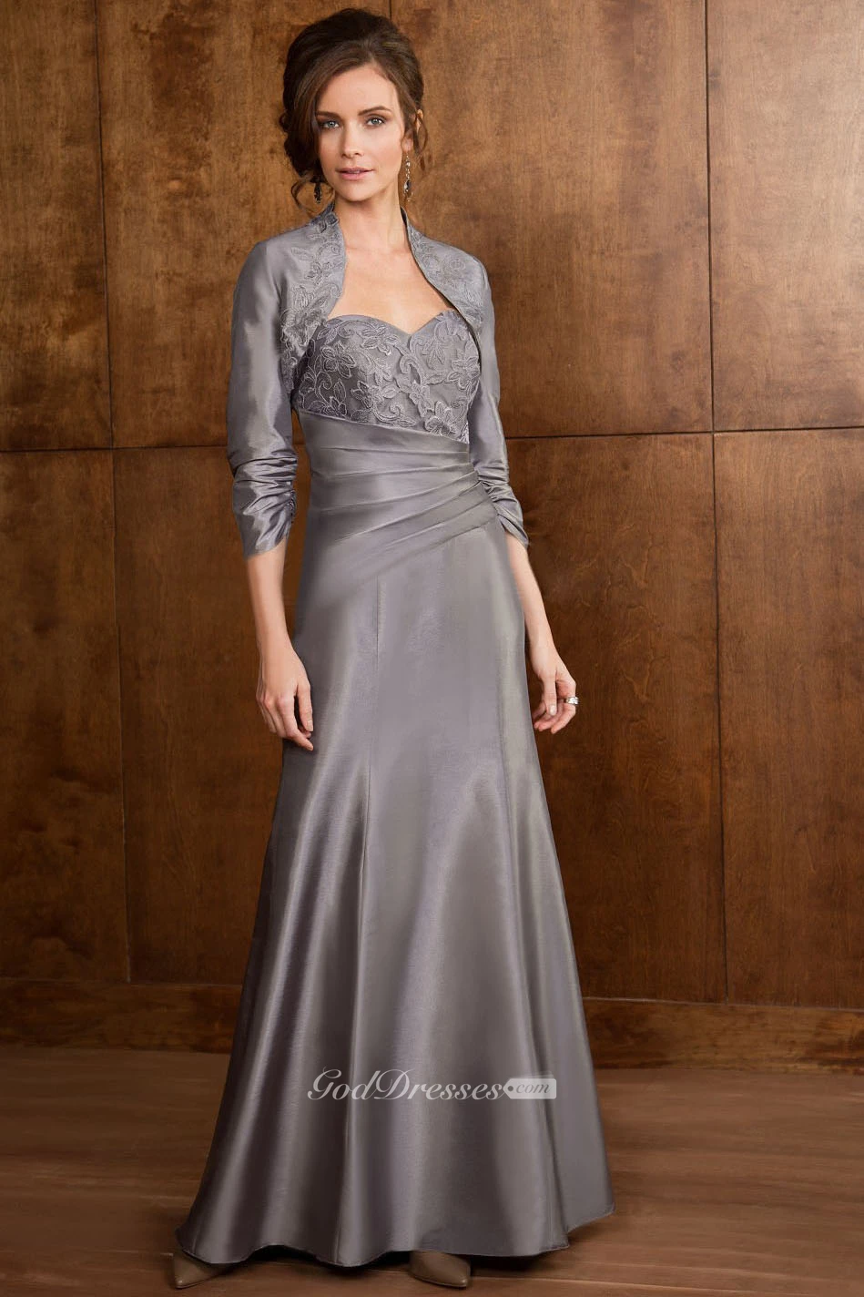 3-4 Sleeved Long Mother Of The Bride Dress With Matching Jacket And Appliques