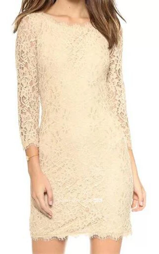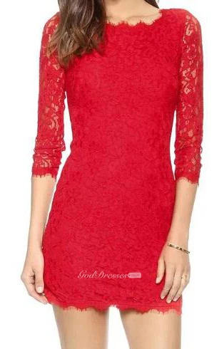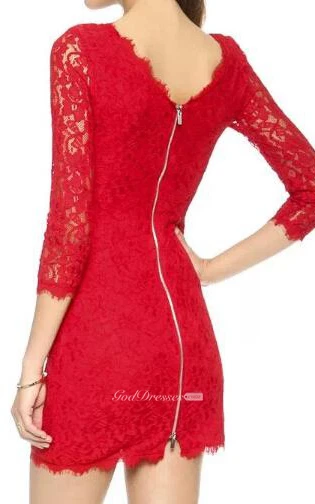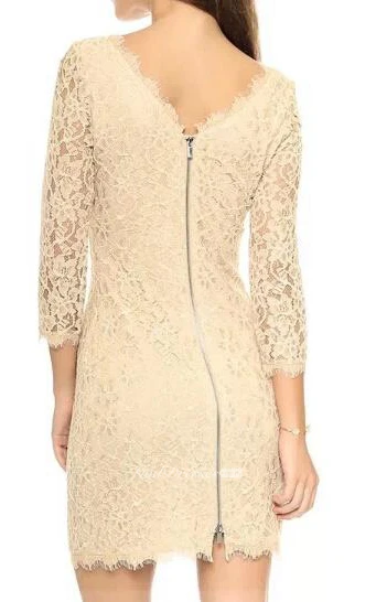 3-4 Sleeved Short Mini Lace Sheath Dress with V-back