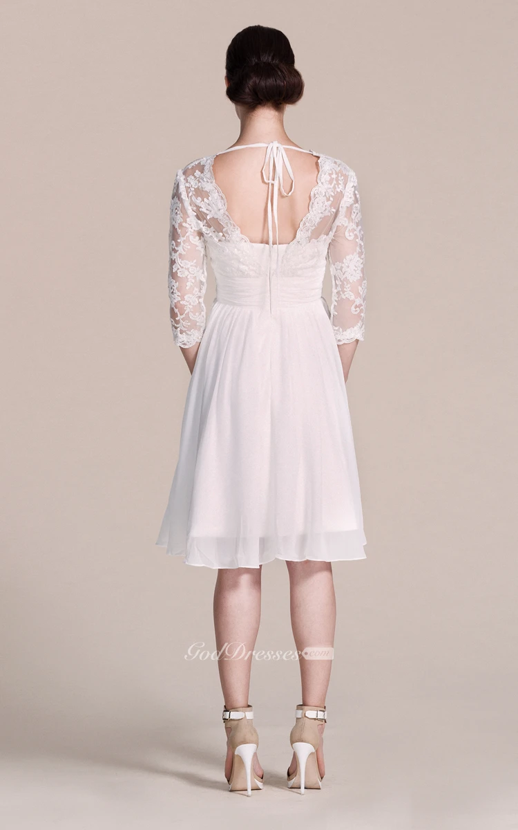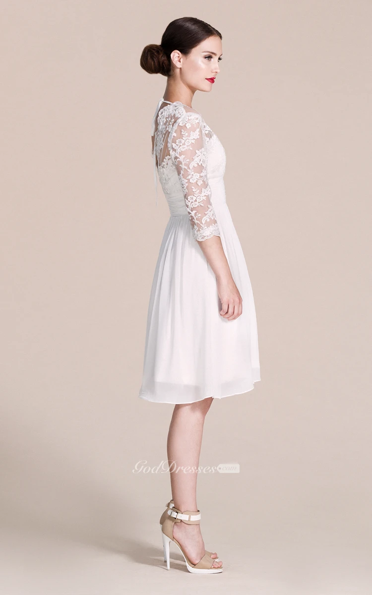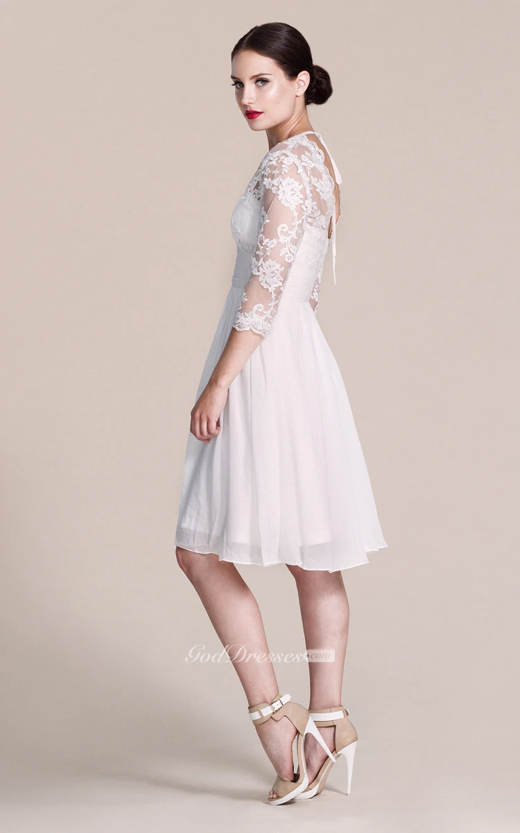 The best short wedding dress ever! They have done a really wonderful job at this dress. The built in support makes this dress more perfect. Long illusion sleeves add a touch of elegance and make this dress suitable for all ages. It would even suit plus sizes.