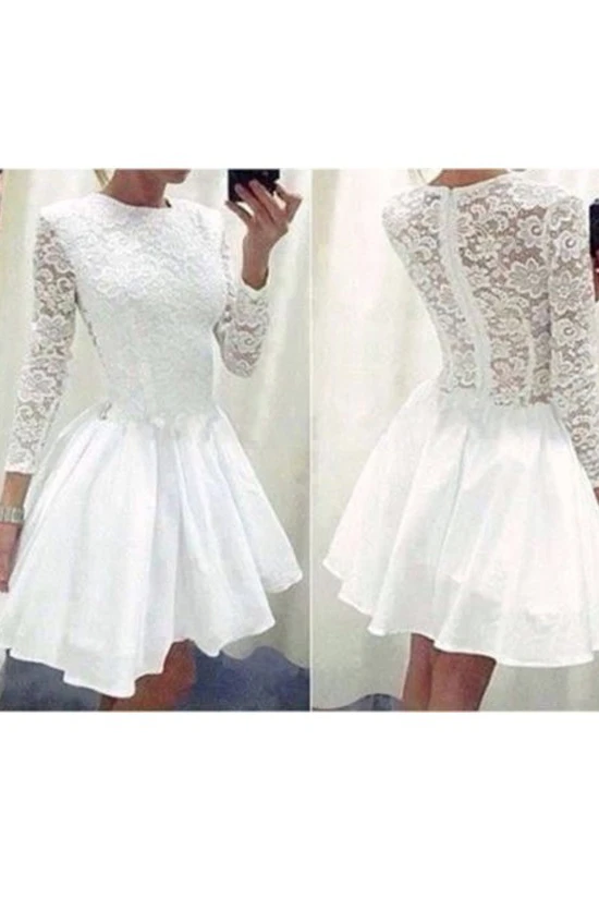 A-line 3 4 Length Sleeve Chiffon Lace High Neck Zipper Illusion Short Mini Homecoming Dress