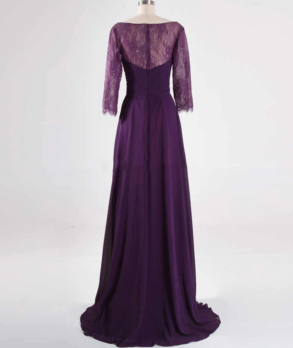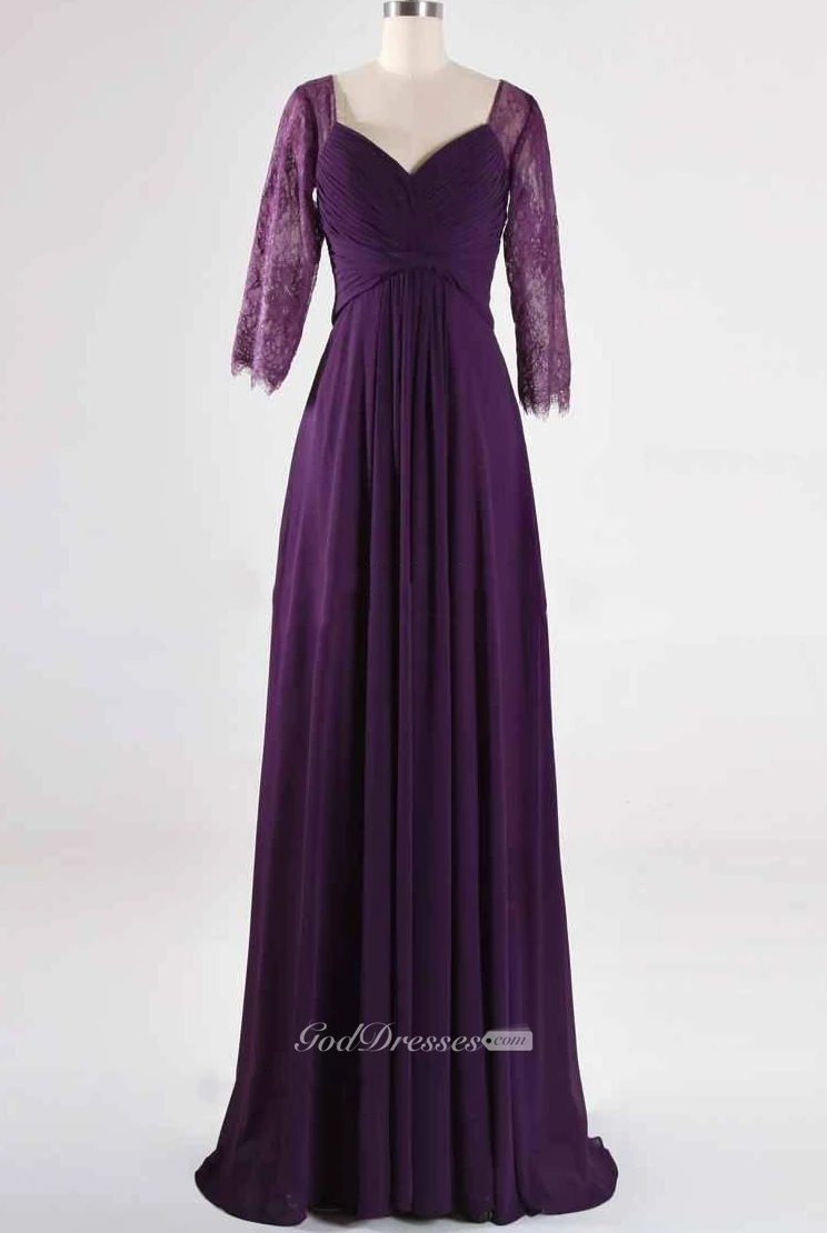 A-line 3-4 Sleeve Sweep Train Lace Dress