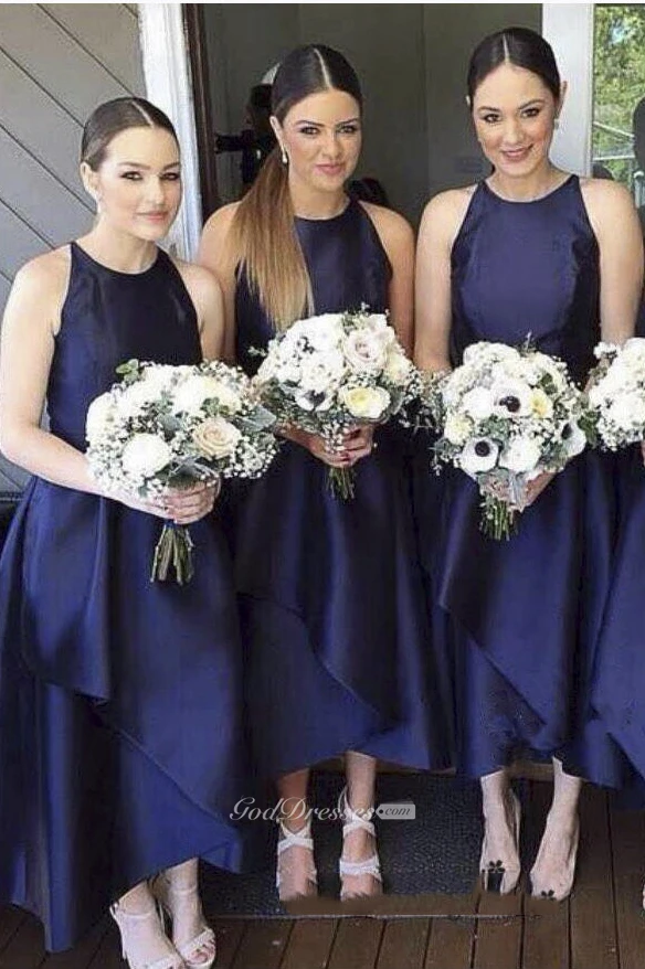 A-line Ankle-Length Sleeveless Zipper Satin Dress