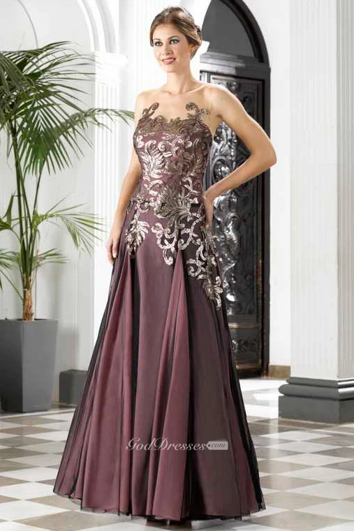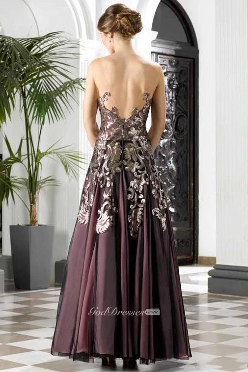A-Line Appliqued Sleeveless Maxi Prom Dress With Pleats And Deep-V Back