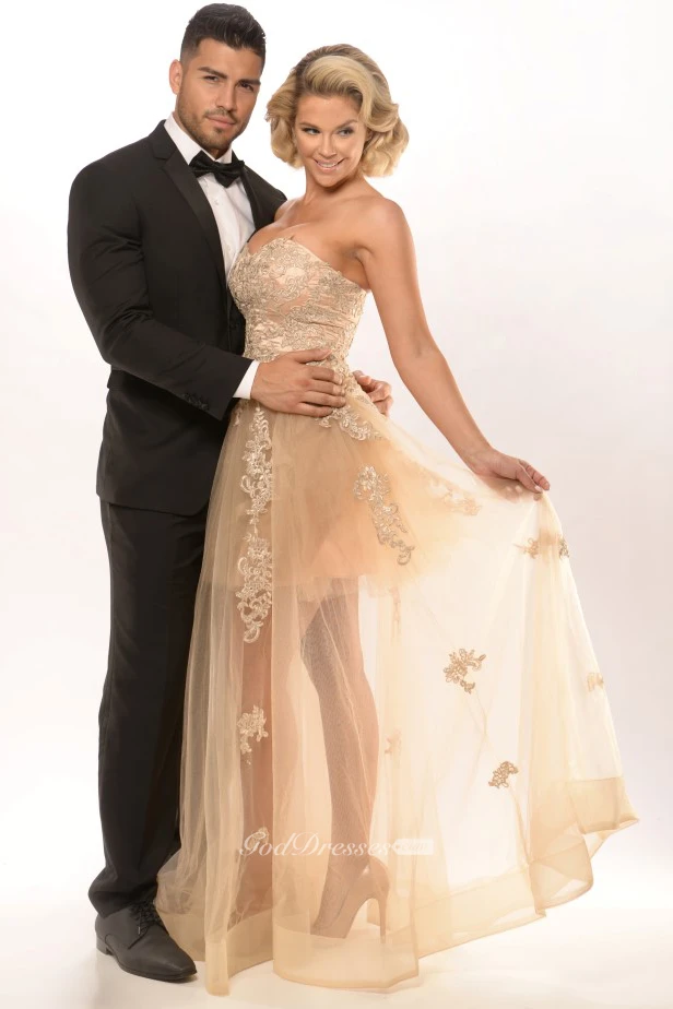 A-Line Appliqued Sweetheart Sleeveless Tulle Prom Dress