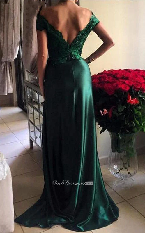 A-line Appliques Lace Split Long Jersey Dress