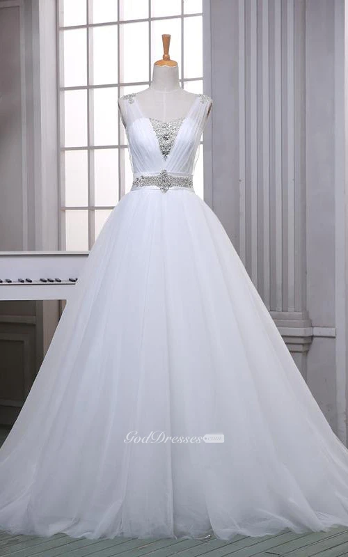 A-Line Ball Gown Floor-Length Off-The-Shoulder One-Shoulder Sweetheart Beading Corset Back Tulle Lace Satin Dress