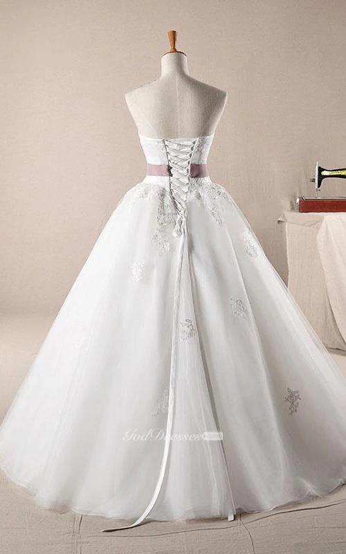 A-Line Ball Gown Long Off-The-Shoulder One-Shoulder Straps Sleeveless Bell Bow Appliques Lace-Up Back Straps Lace Organza Dress
