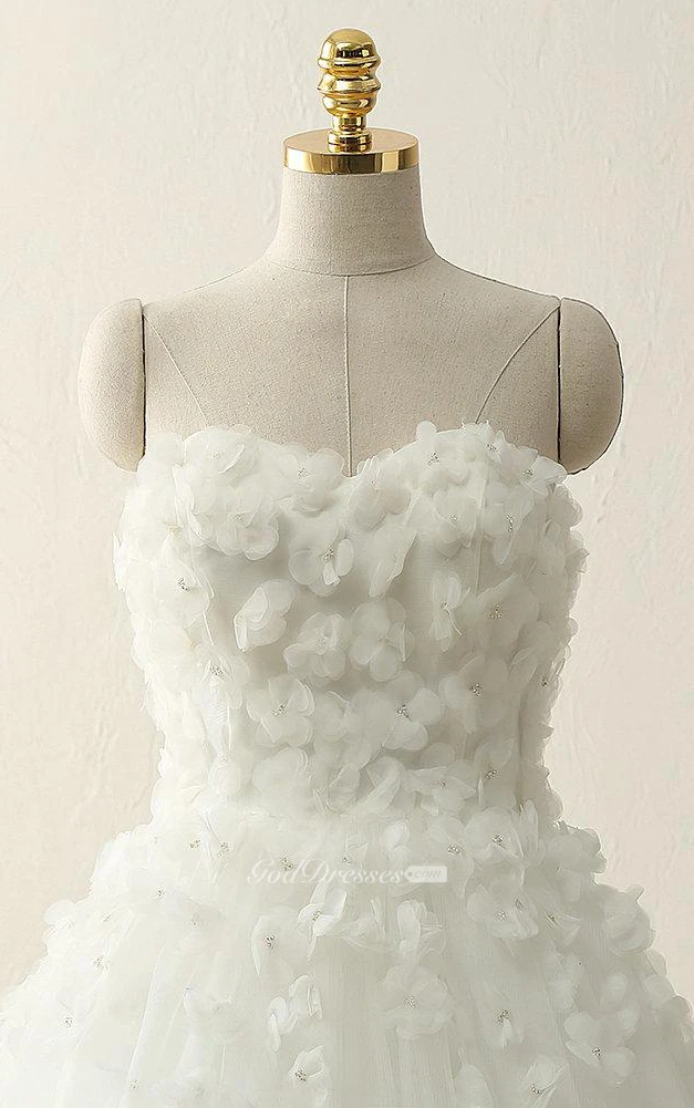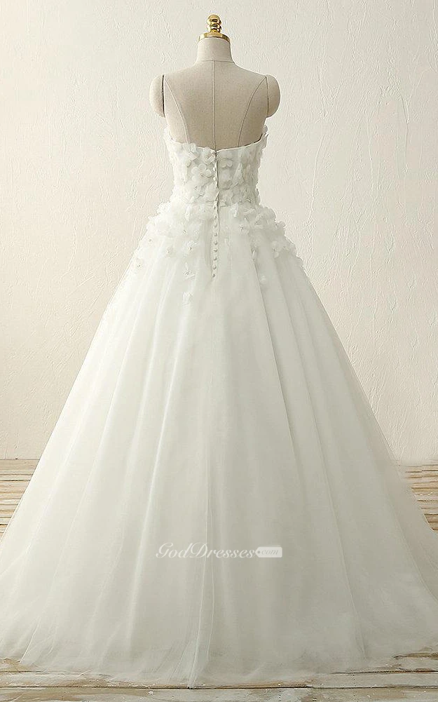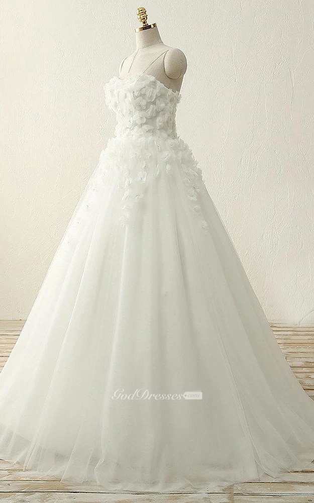 A-Line Ball Gown Mini Straps Sweetheart Beading Flower Straps Tulle Lace Satin Dress
