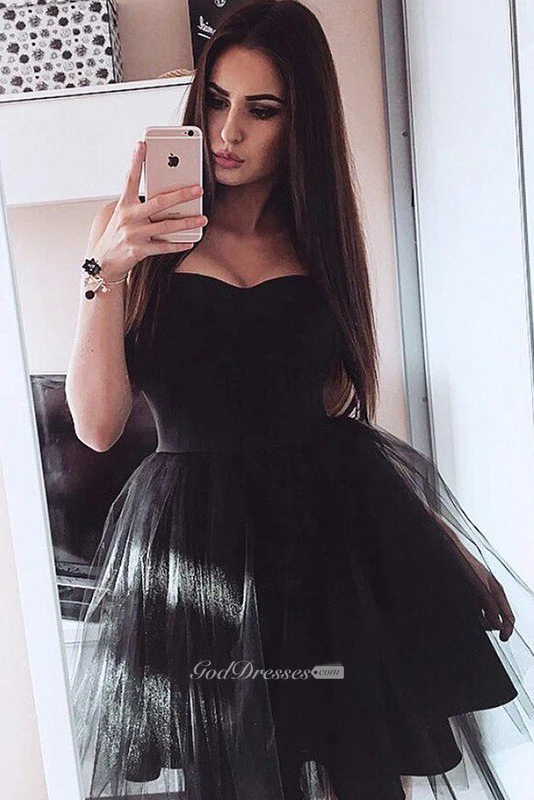 A-line Ball Gown Sleeveless Satin Tulle Sweetheart Short Mini Homecoming Dress