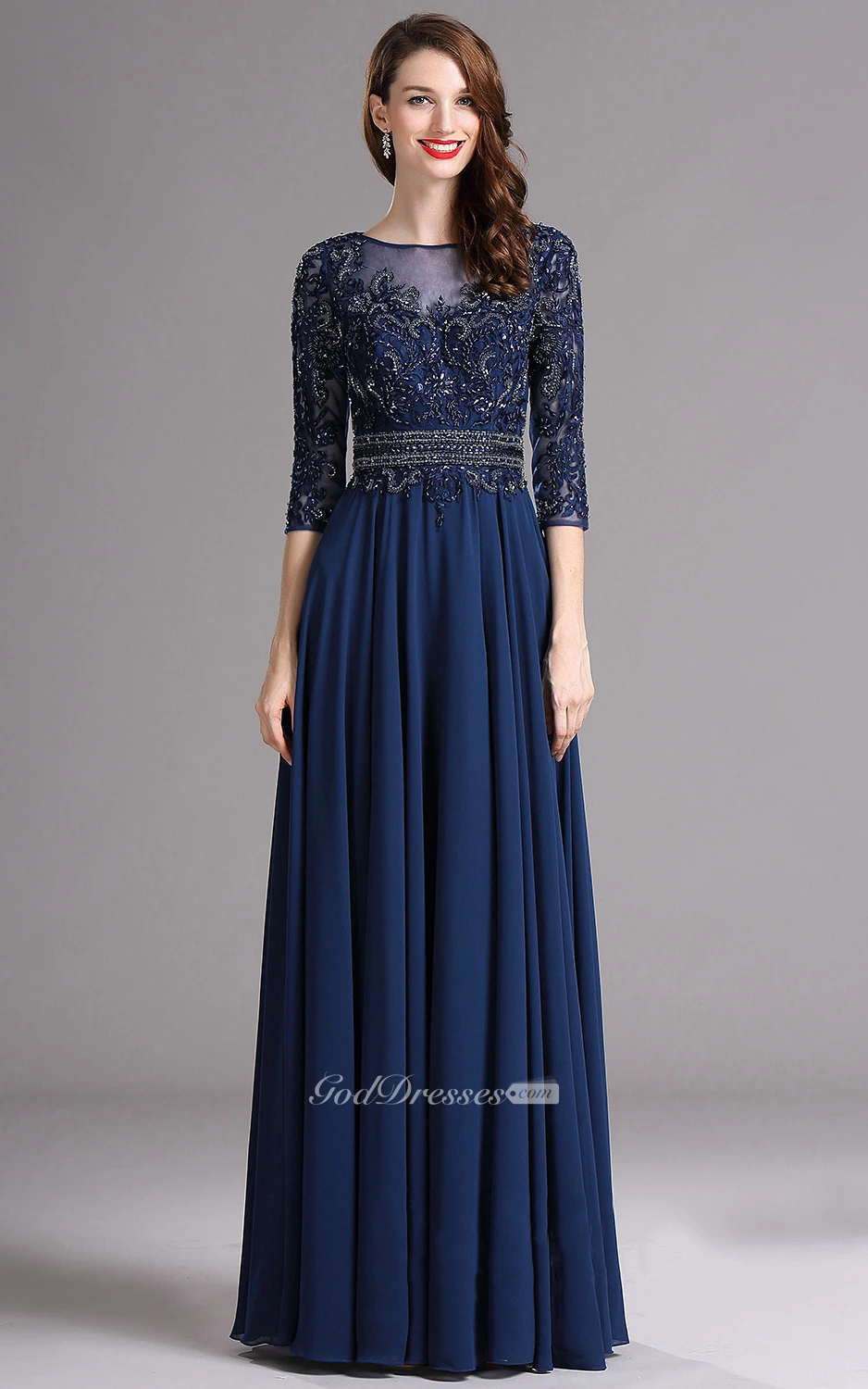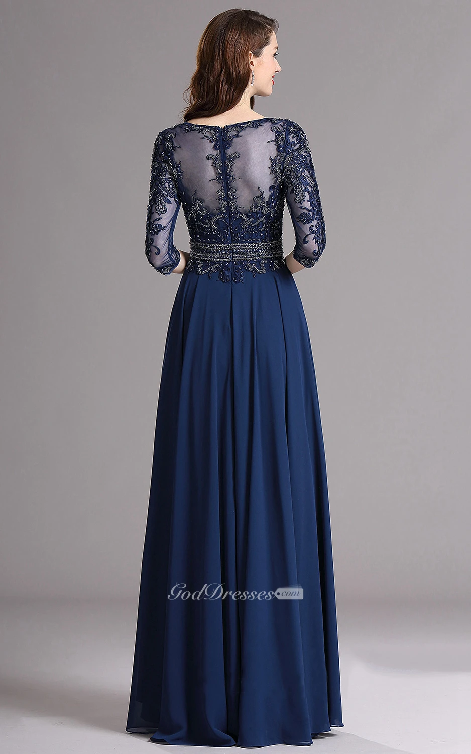 A-Line Bateau 3 Chiffon Appliques Illusion Dress