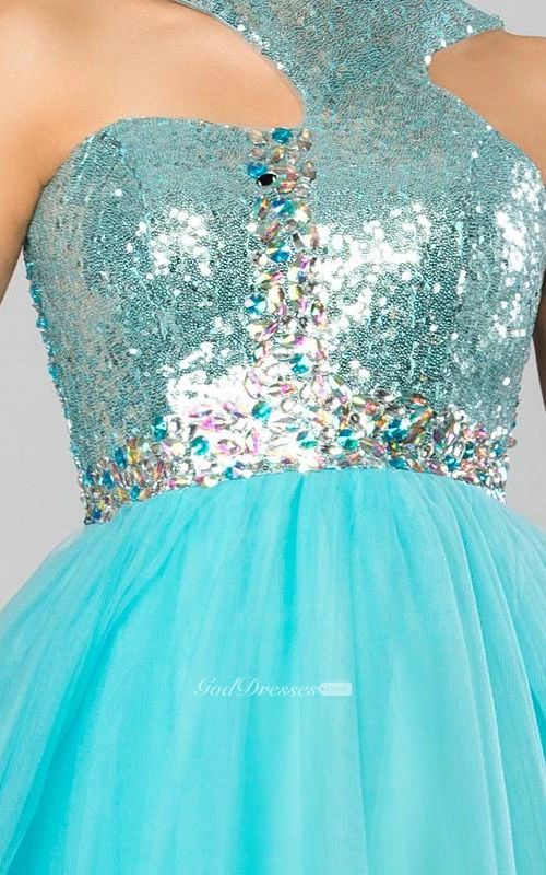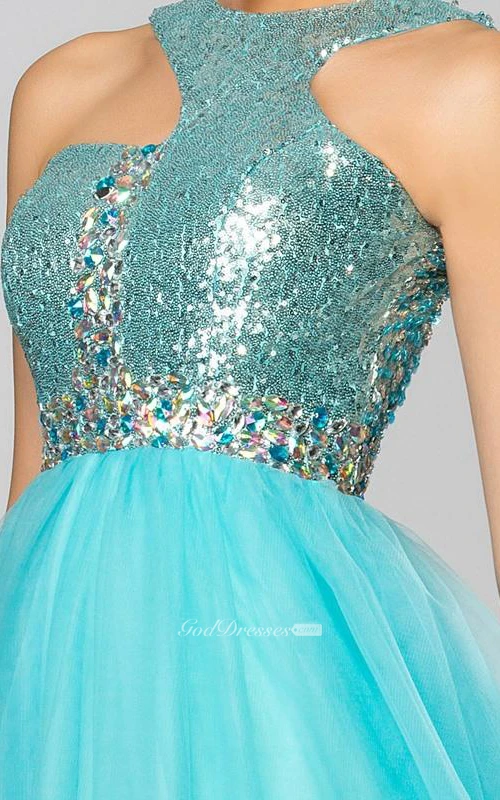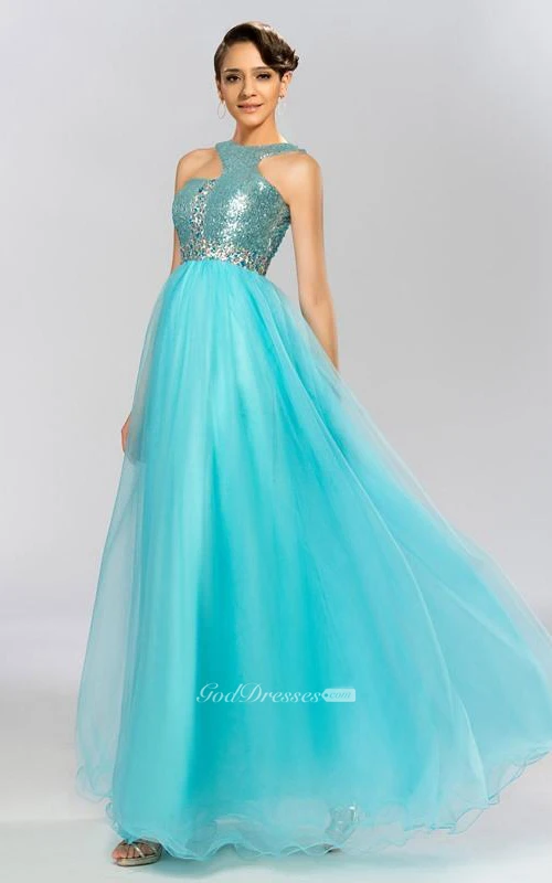 A-line Bateau Neck Sequins Beadings Floor-Length Prom Dress