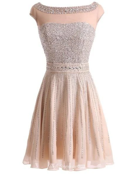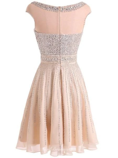 A-line Bateau Sleeveless Beading Short Chiffon Dresses
