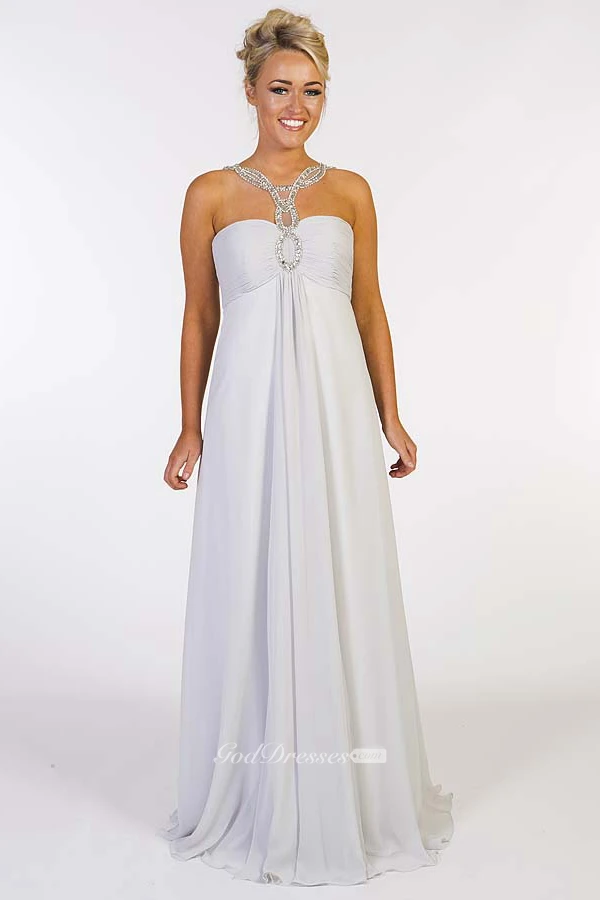 A-Line Beaded Empire Floor-Length Sleeveless Sweetheart Chiffon Prom Dress With Zipper Back And Ruching