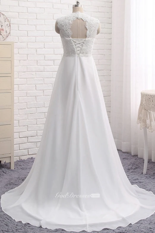 A-line Chiffon Empire Elegant Queen Anne Lace Wedding Dress With Key Hole And Lace-up