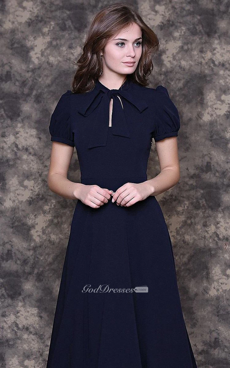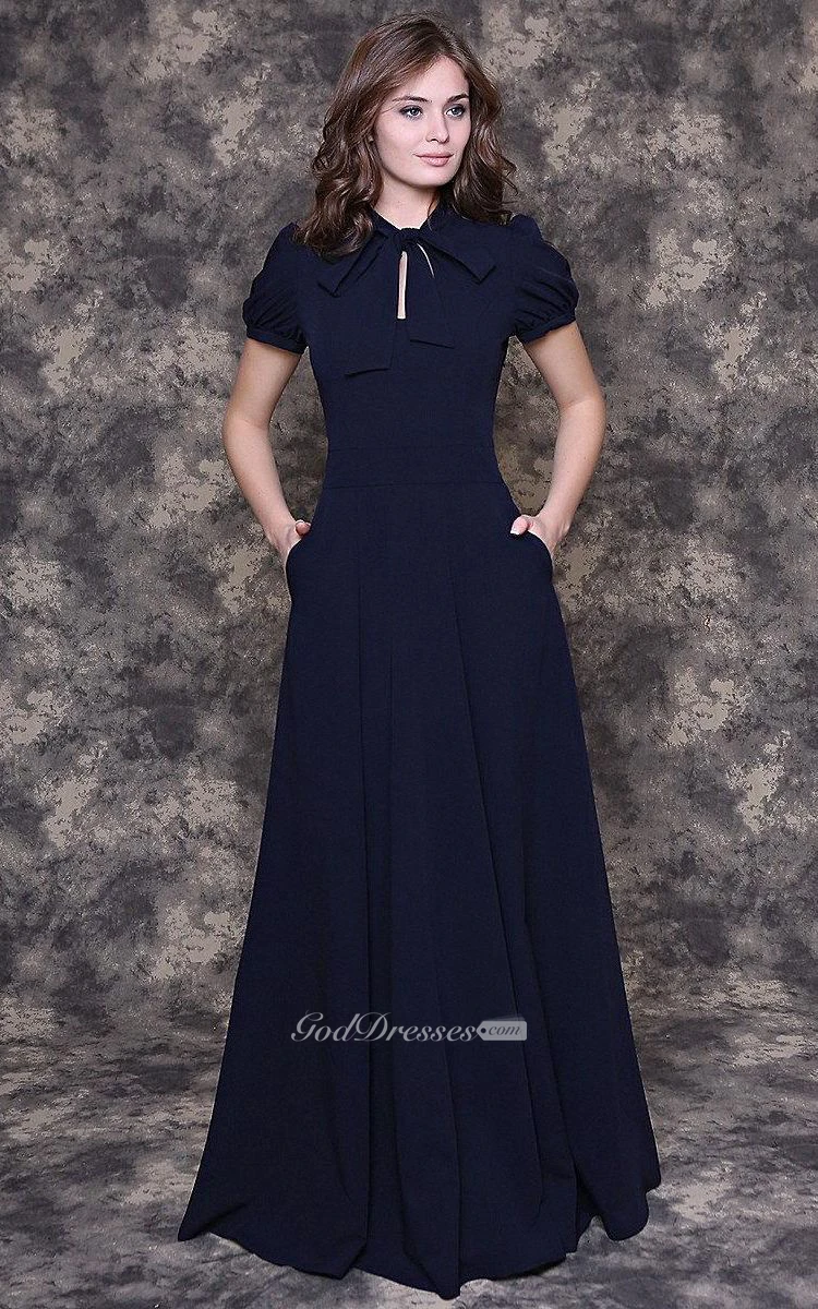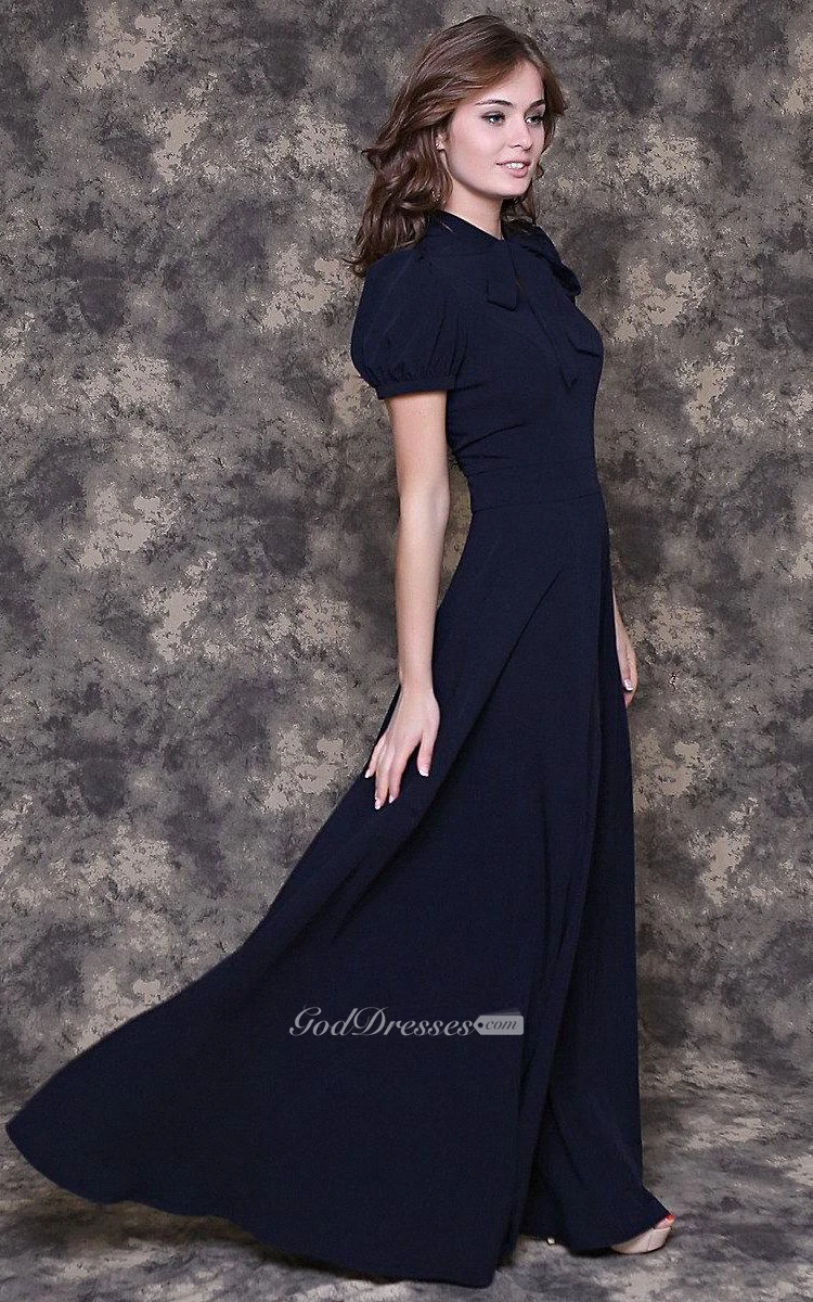 A-Line Chiffon Floor-Length Dress With Puff Short Sleeve