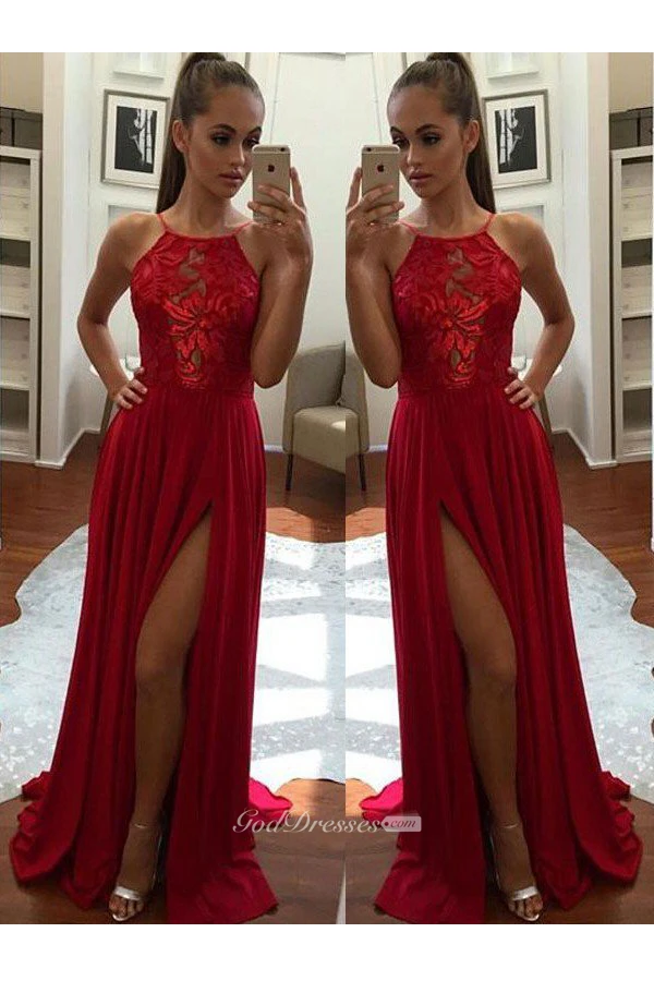 A-Line Chiffon Lace Spaghetti Sleeveless Zipper Dress