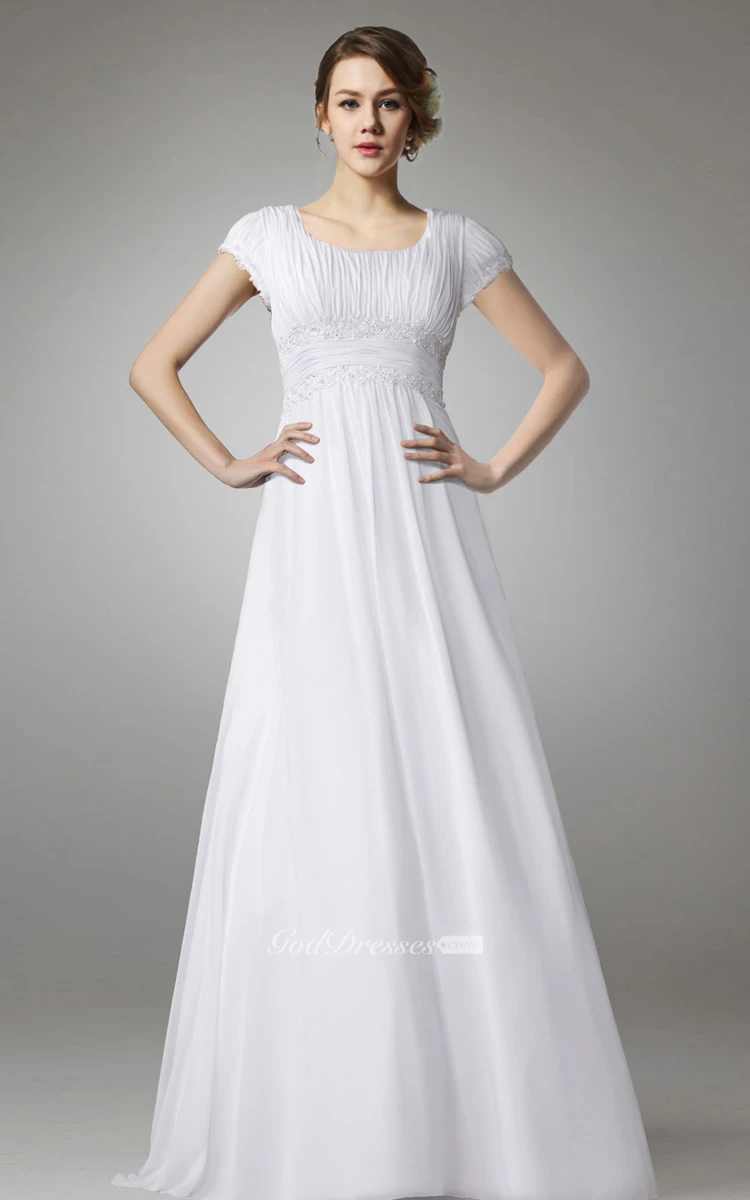 A-line Chiffon Long Wedding Dress With Empire Waist