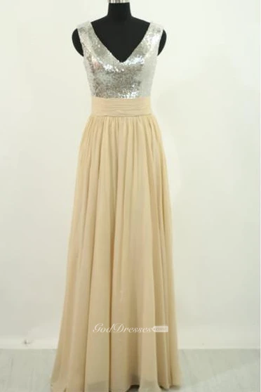 A-Line Chiffon Sequins V-neck Sleeveless Zipper Dress