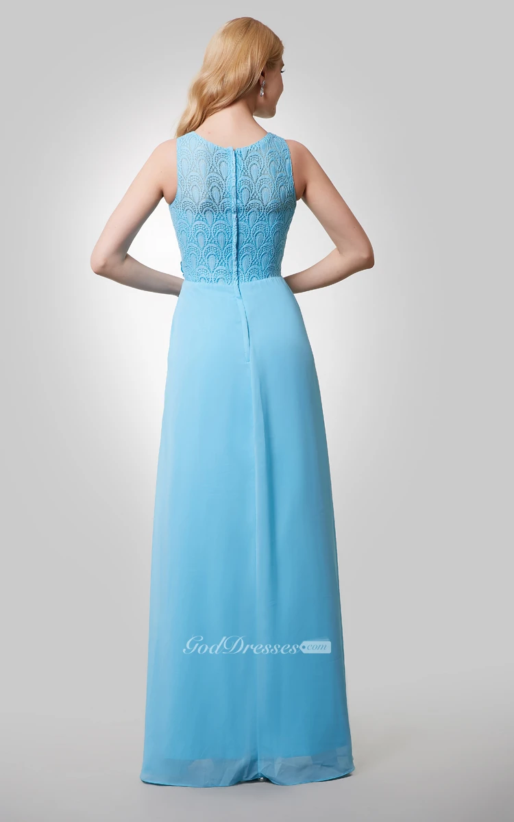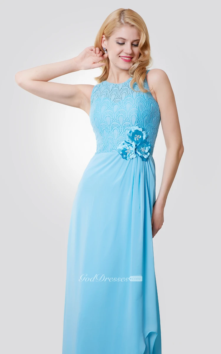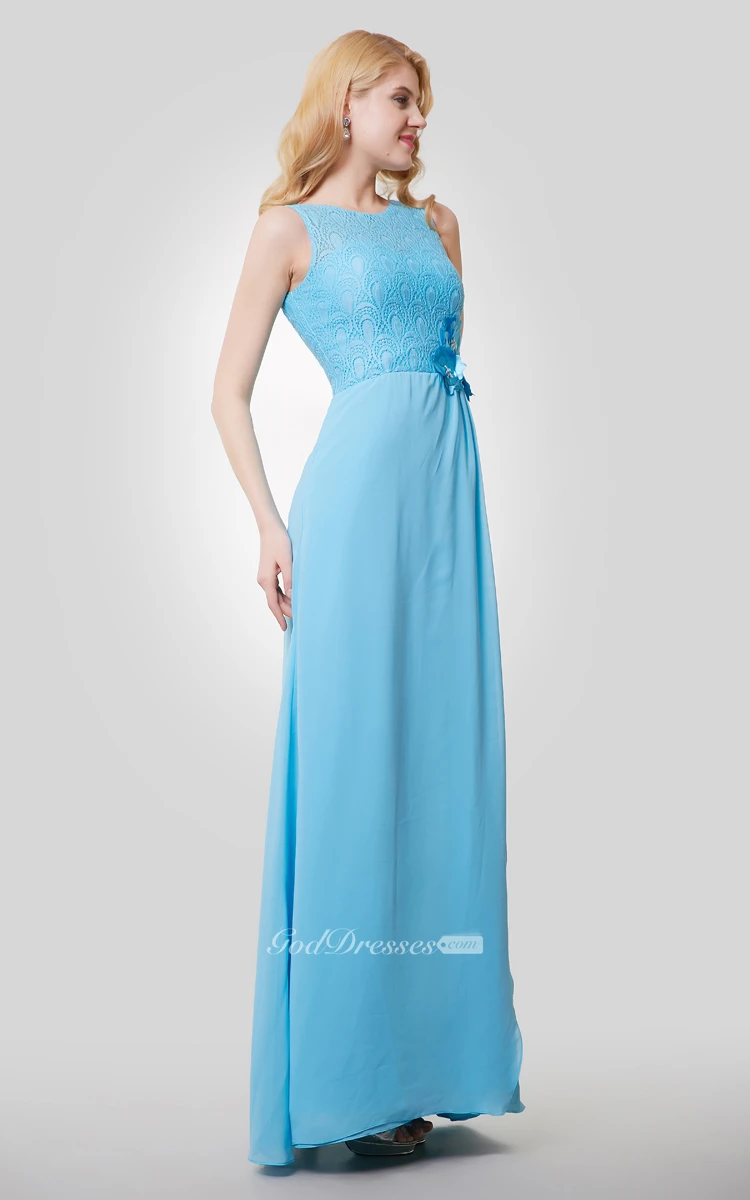 A-Line Chiffon Sleeveless Dress With Lace Bodice and Beaded Flowers