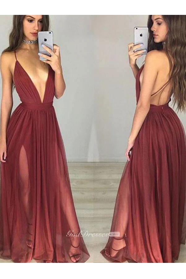 A-Line Chiffon Spaghetti Sleeveless Open Back Straps Dress