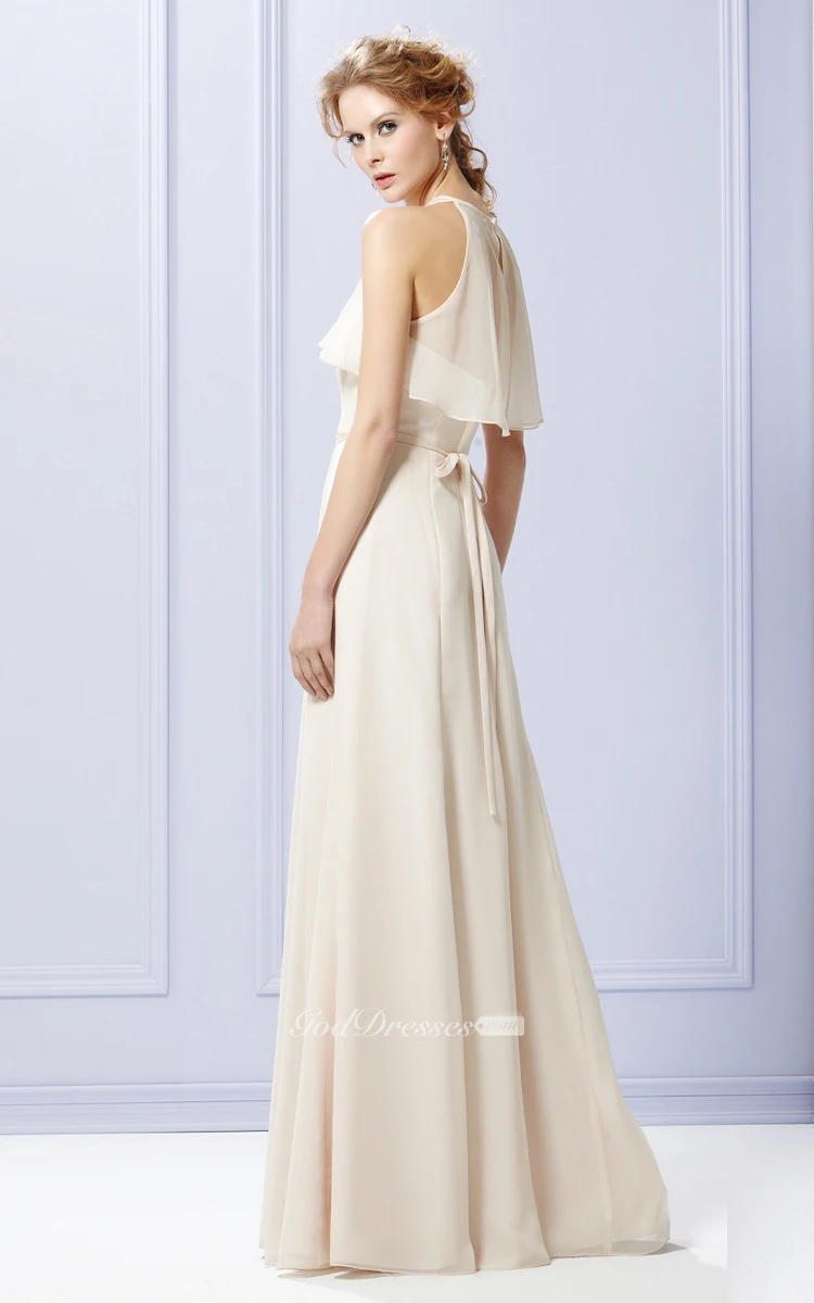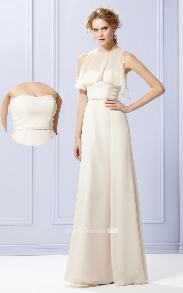 A-Line Chiffon Strapless Gown With Shiny Sash