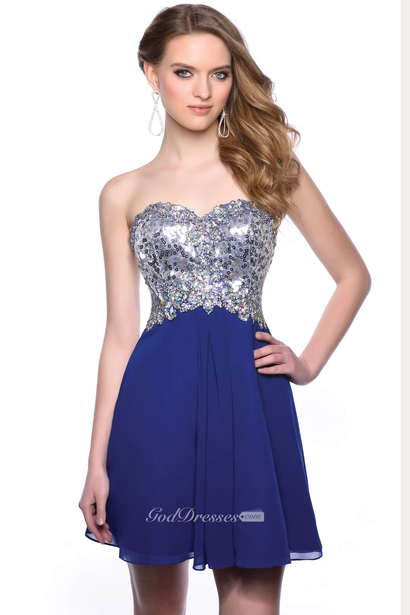 A-Line Chiffon Sweetheart Short Homecoming Dress With Beaded Corset