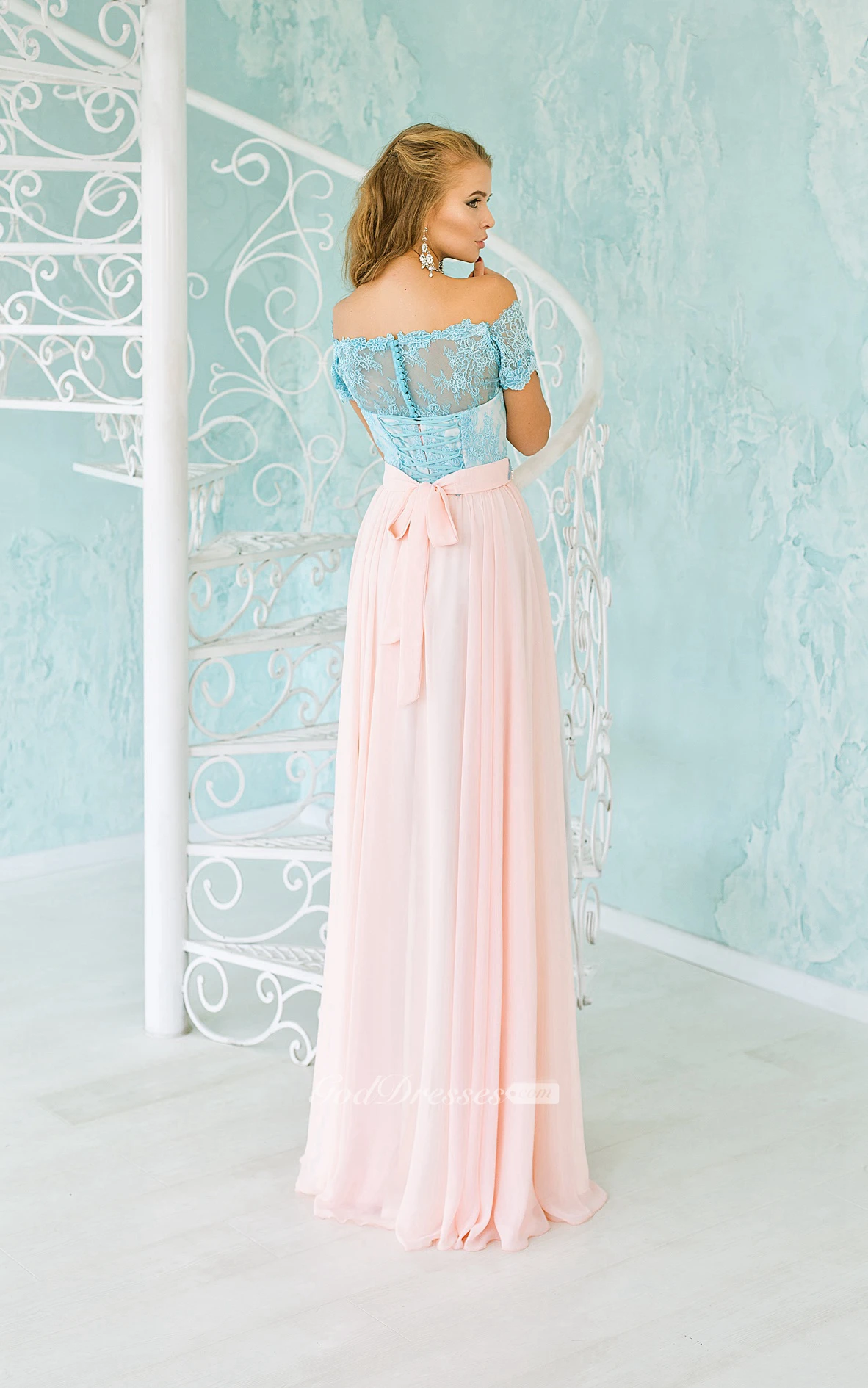 A-Line Court Train Off-The-Shoulder Short Sleeve Satin Ruffles Lace Lace-Up Dress