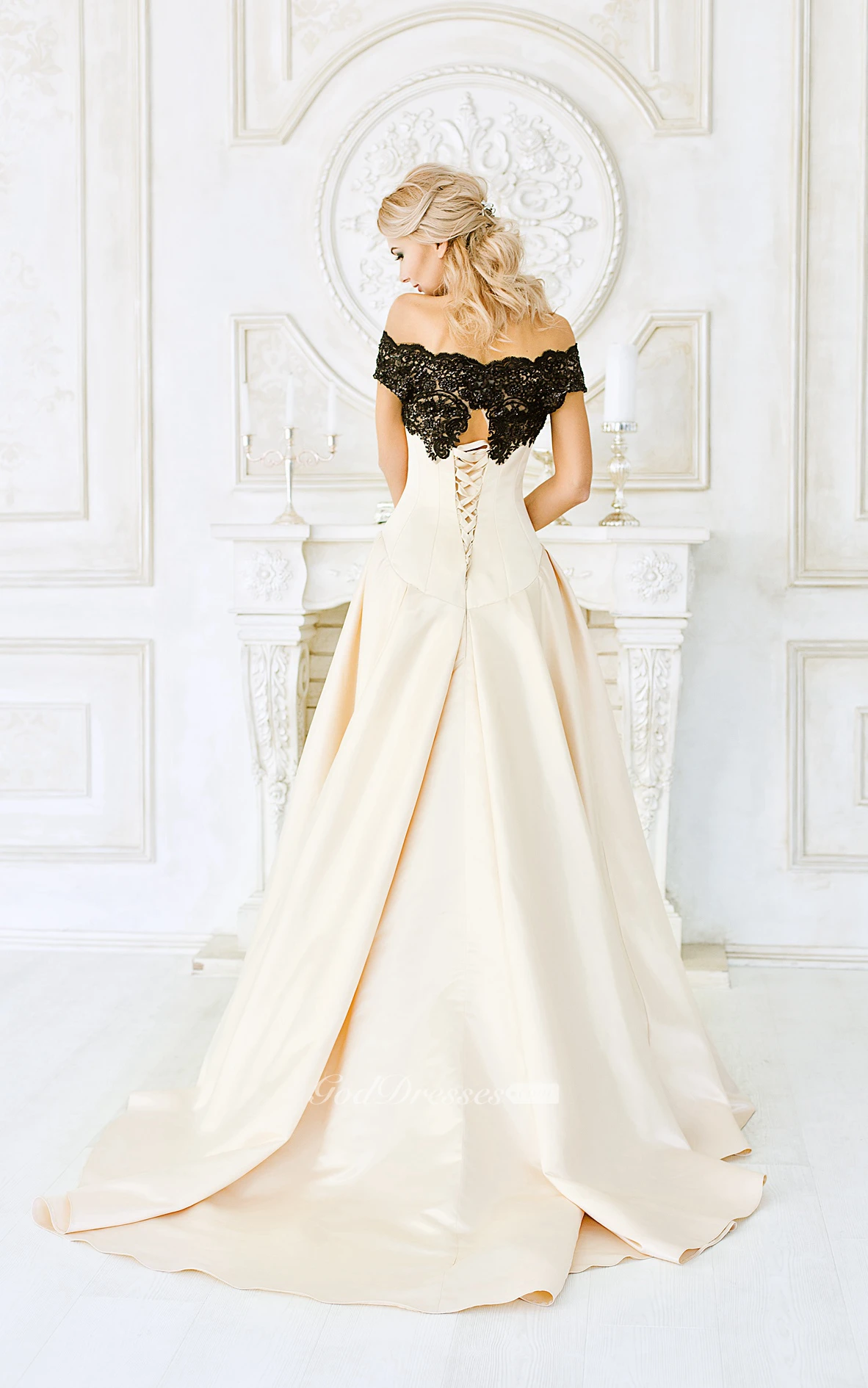 A-Line Court Train Strapless Tulle Ruffles Appliques Illusion Dress