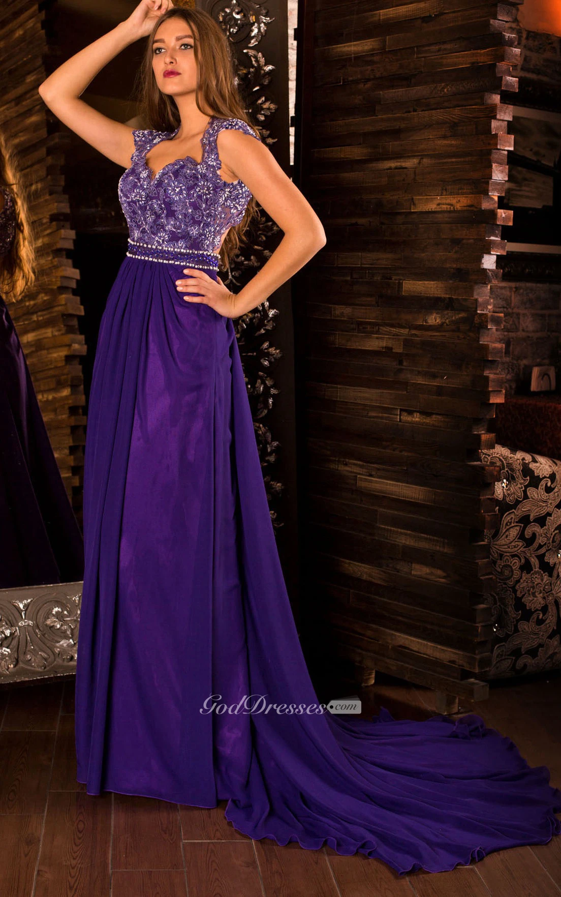 A-Line Court Train V-Neck Short Sleeve Jersey Beading Appliques Keyhole Dress