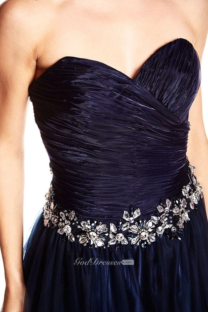 A-Line Criss-Cross Sweetheart Sleeveless Long Satin Prom Dress With Bow And Waist Jewellery