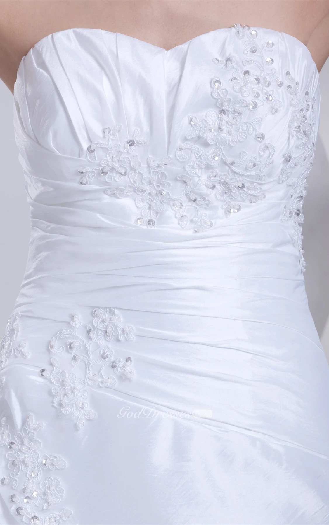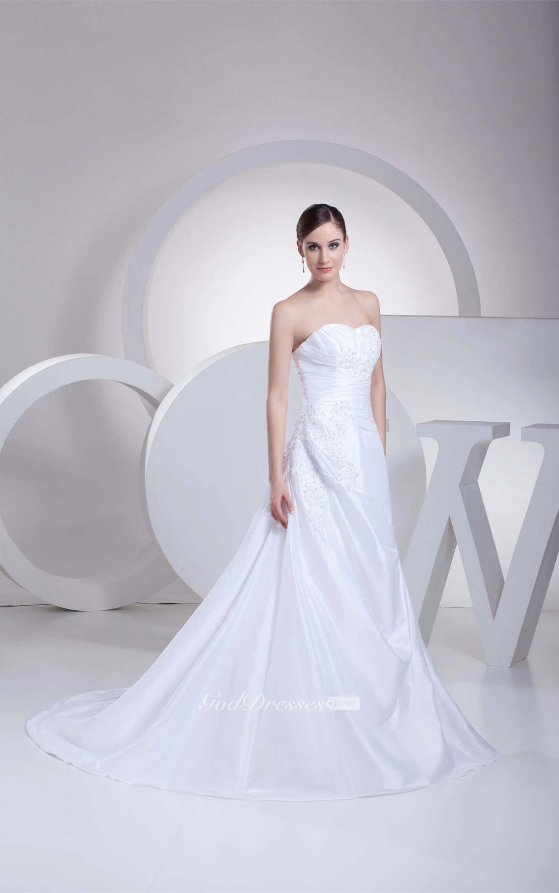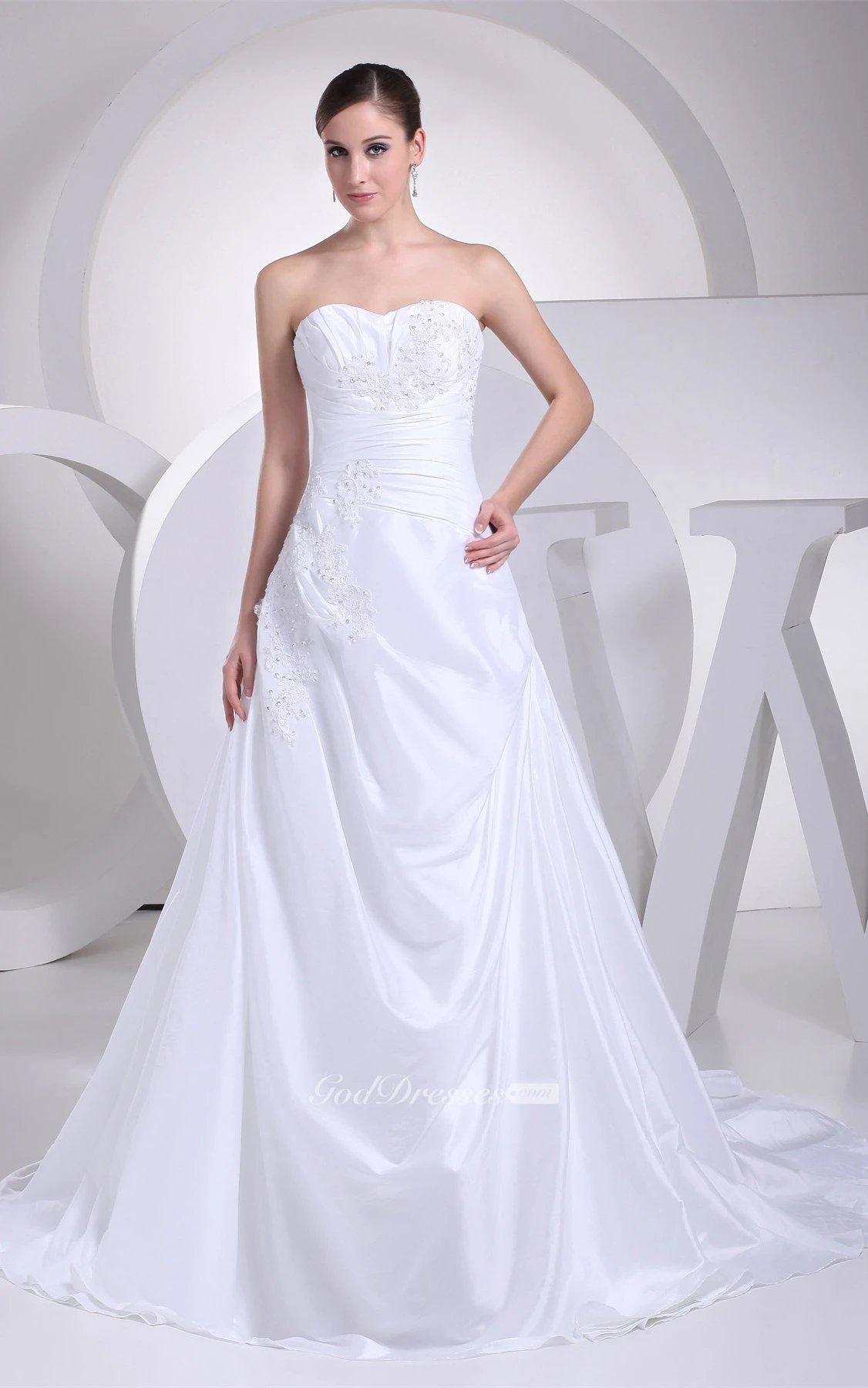 A-Line Draped Gown With Appliques Ruched Waist