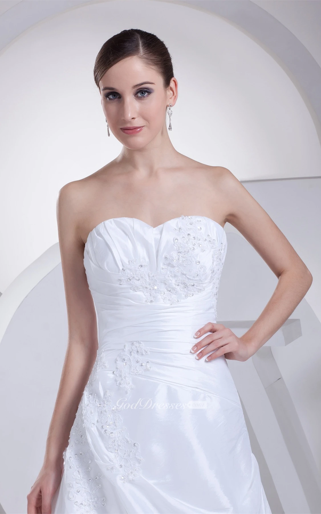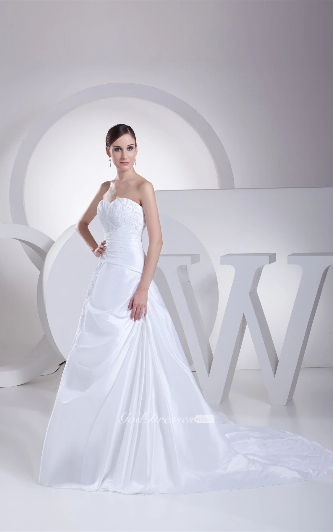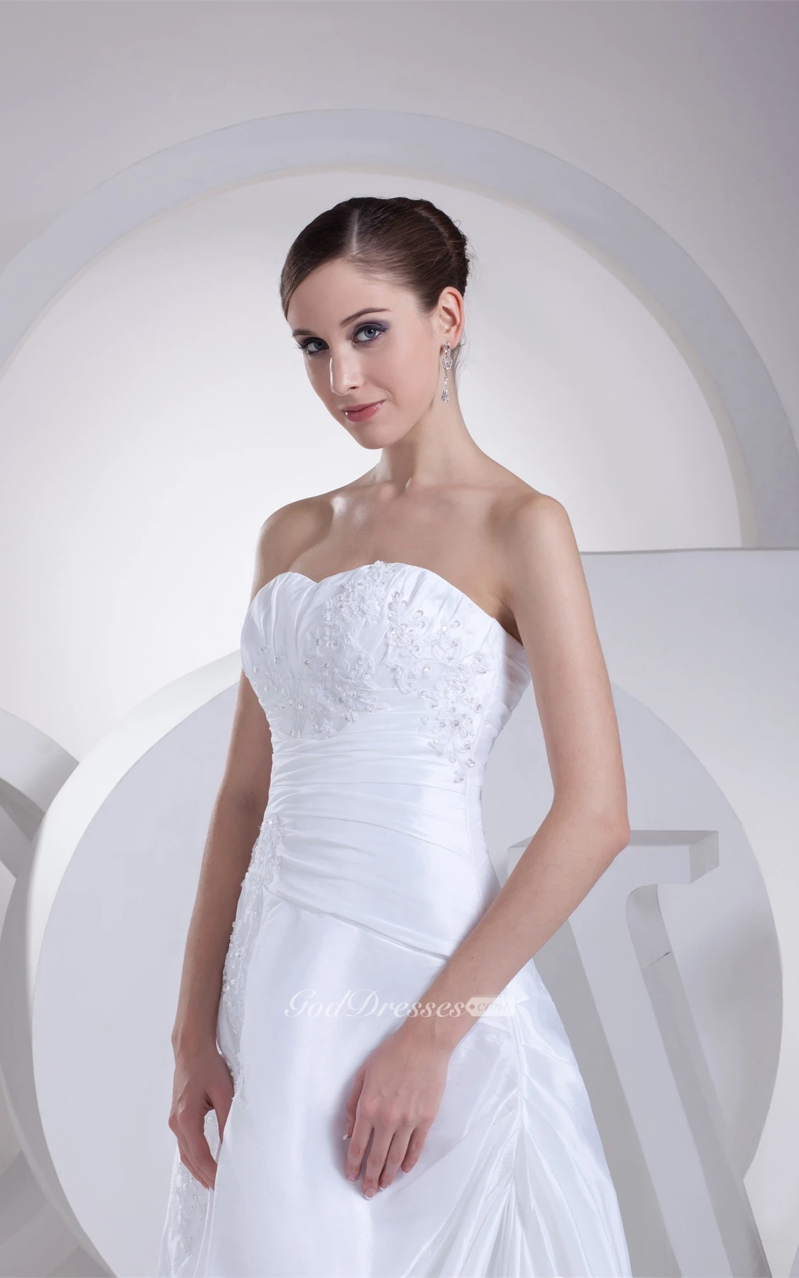 A-Line Draped Gown With Appliques Ruched Waist