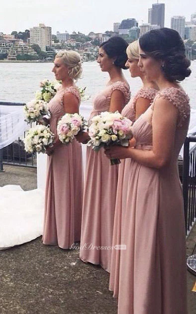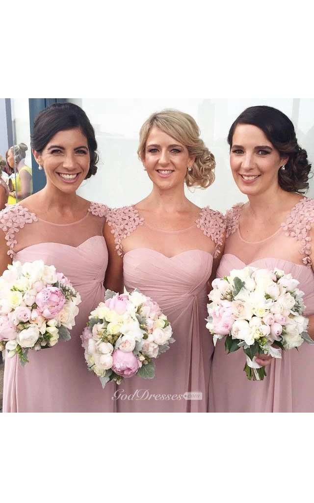 A-line Empire Chiffon Dress with Appliques and Illusion Style