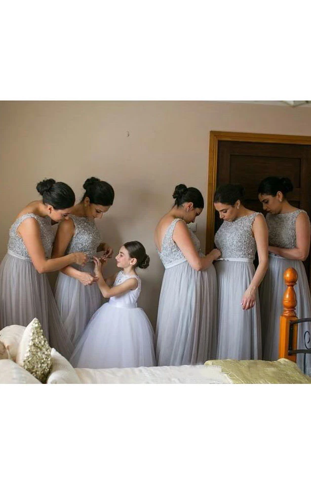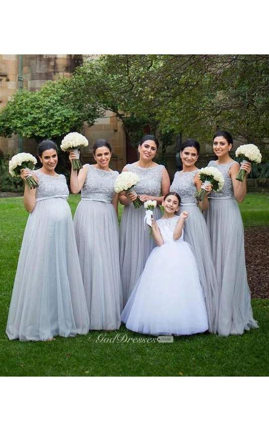 A-line Empire Floor-length Chiffon Lace Dress