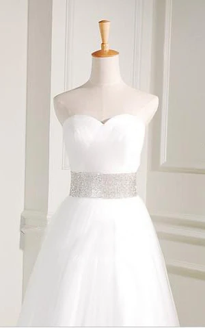 A-Line Empire Long Sweetheart Sleeveless Bell Empire Ribbon Tulle Lace Dress