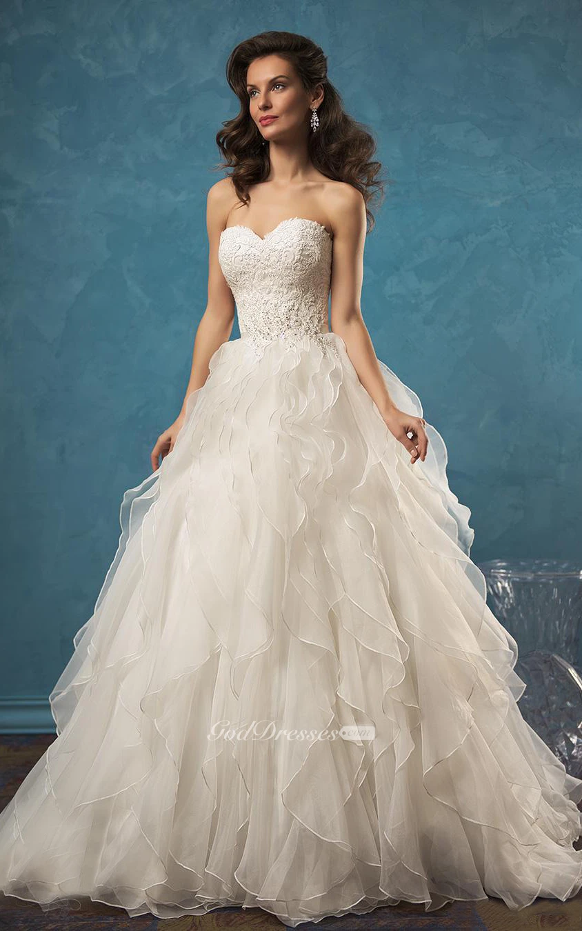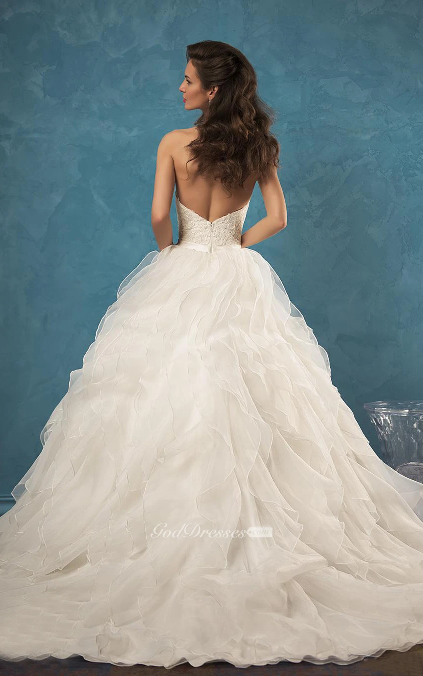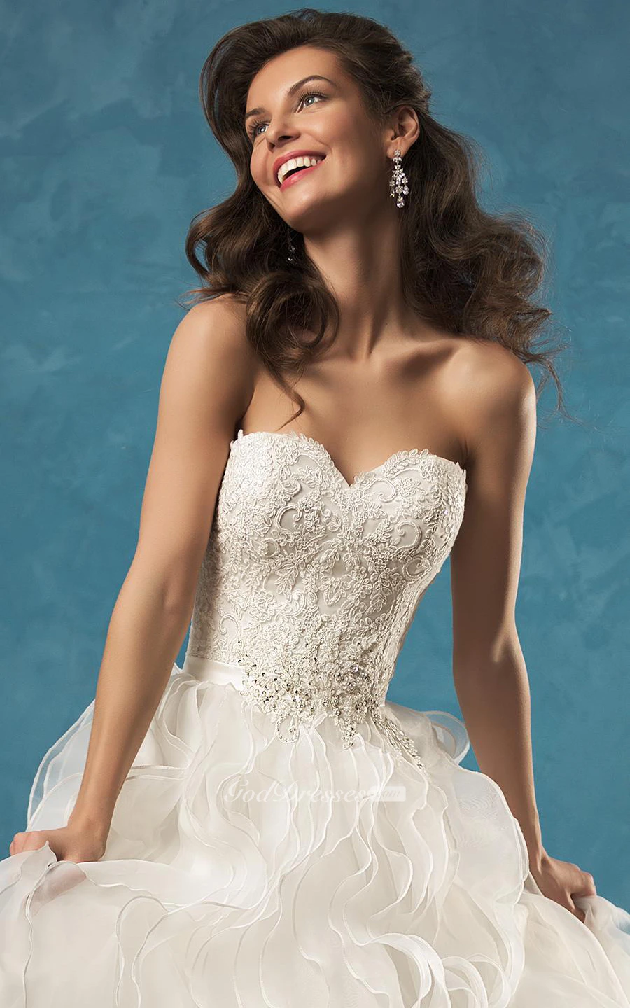 A-Line Empire Short Straps Sweetheart Bell Empire Court Train Zipper Straps Lace Organza Dress