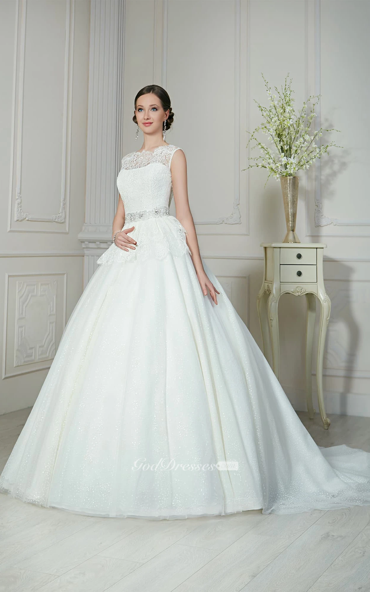 A-Line Floor-Length Bateau-Neck Sleeveless Illusion Tulle Dress With Sequins And Beading