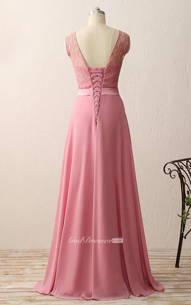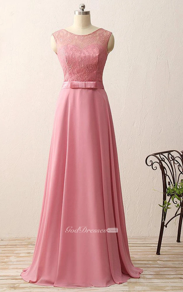 A-line Floor-length Chiffon Lace Satin Dress