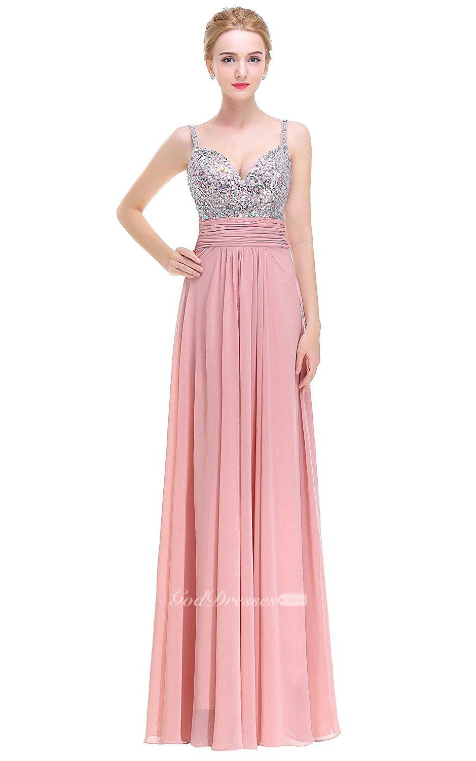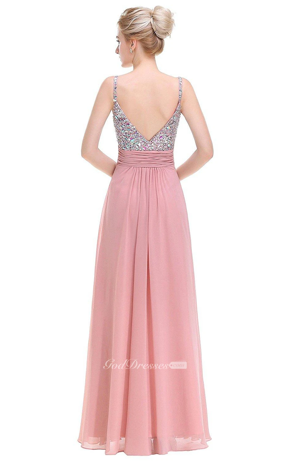 A-line Floor-length Dress with Beaded Bodice and V-back