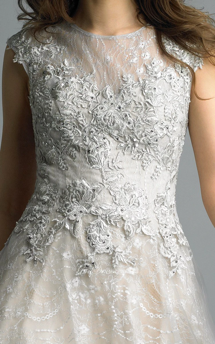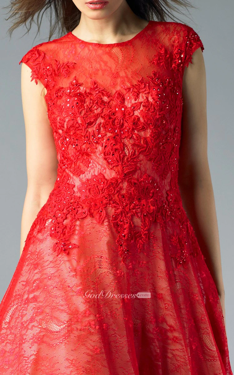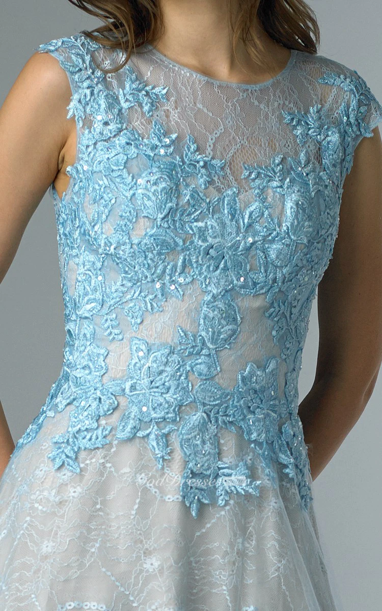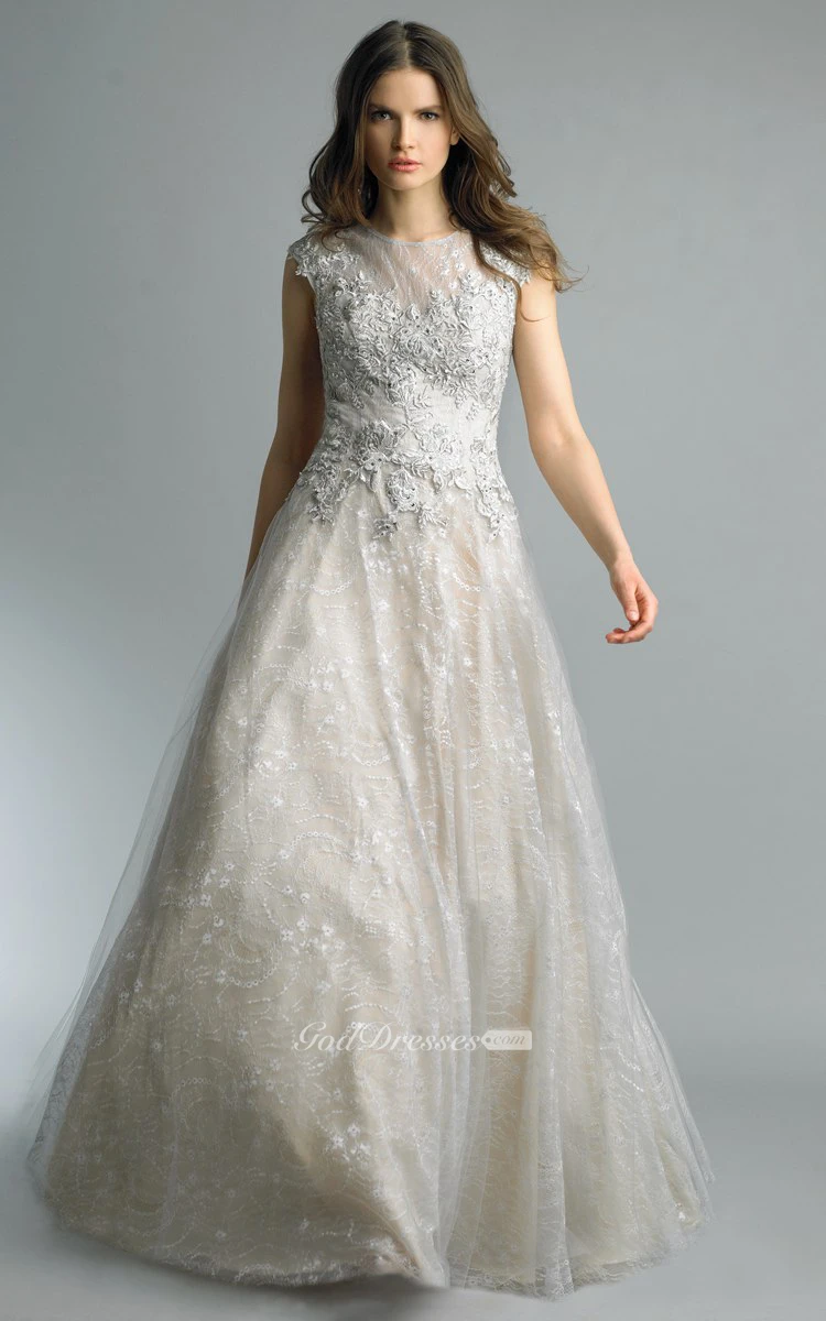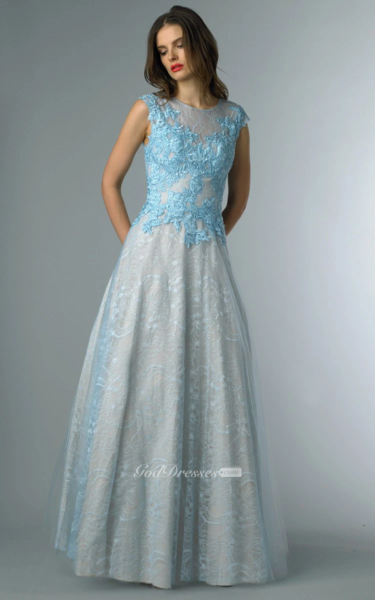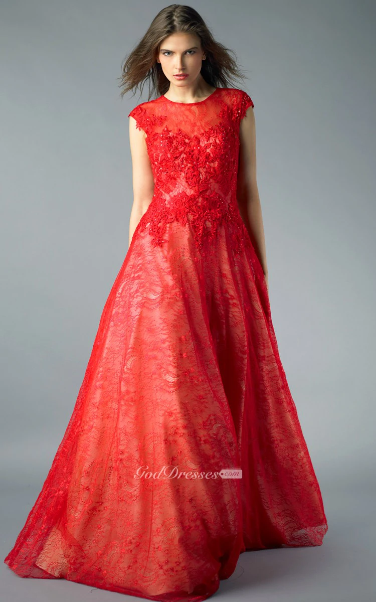 A-line Floor-length High Neck Short Sleeve Lace Illusion Dress
