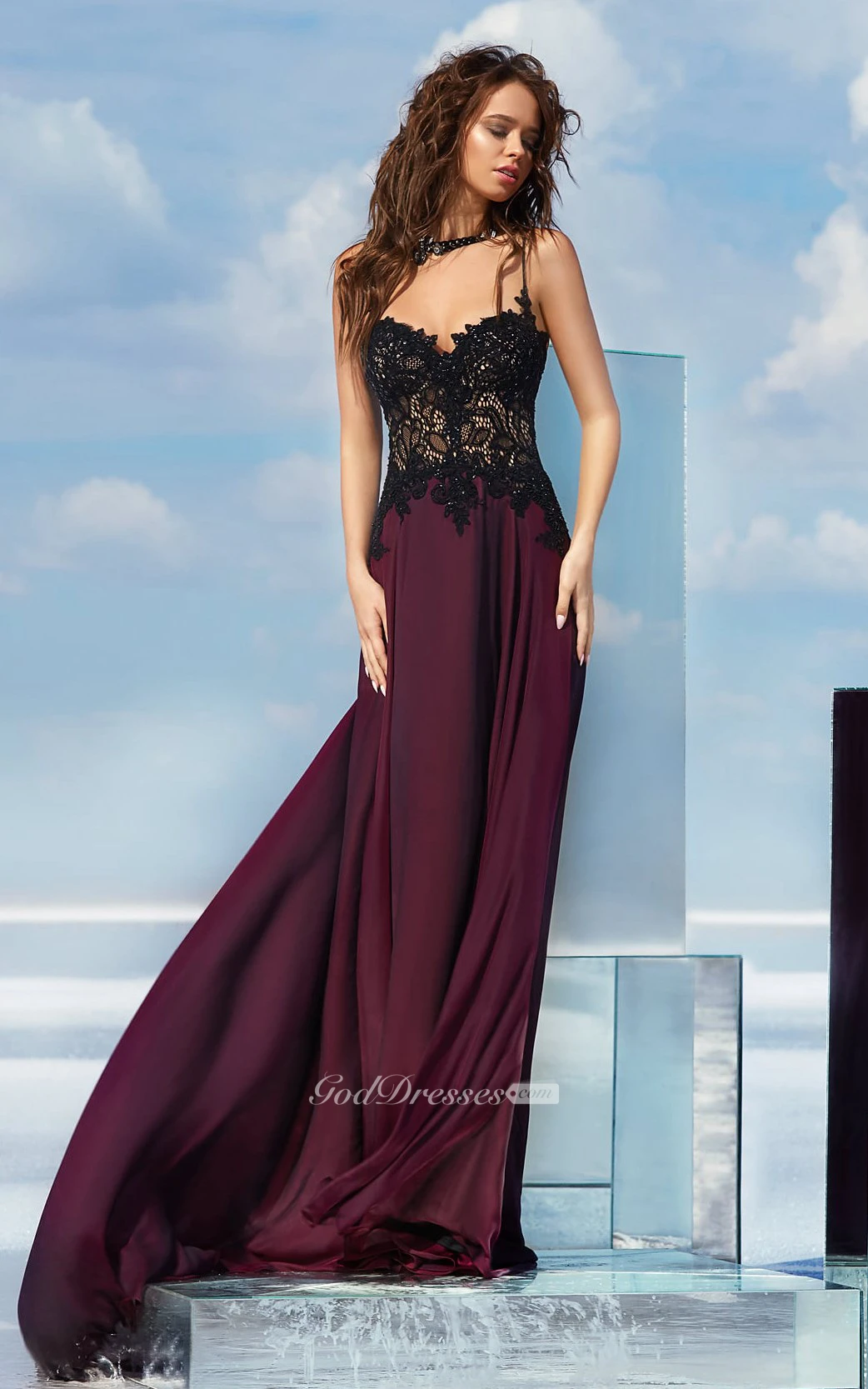 A-line Floor-length High Neck Sleeveless Chiffon Illusion Dress
