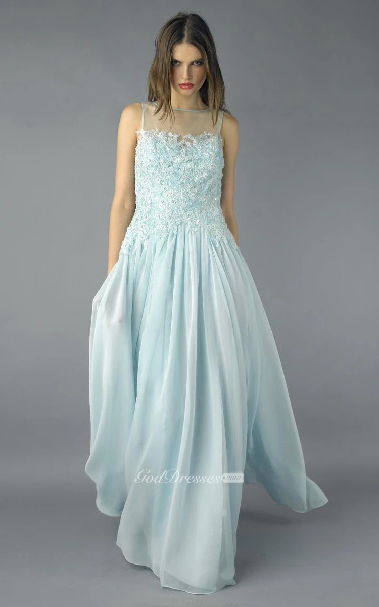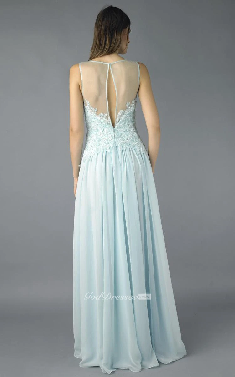 A-line Floor-length High Neck Sleeveless Chiffon Keyhole Dress