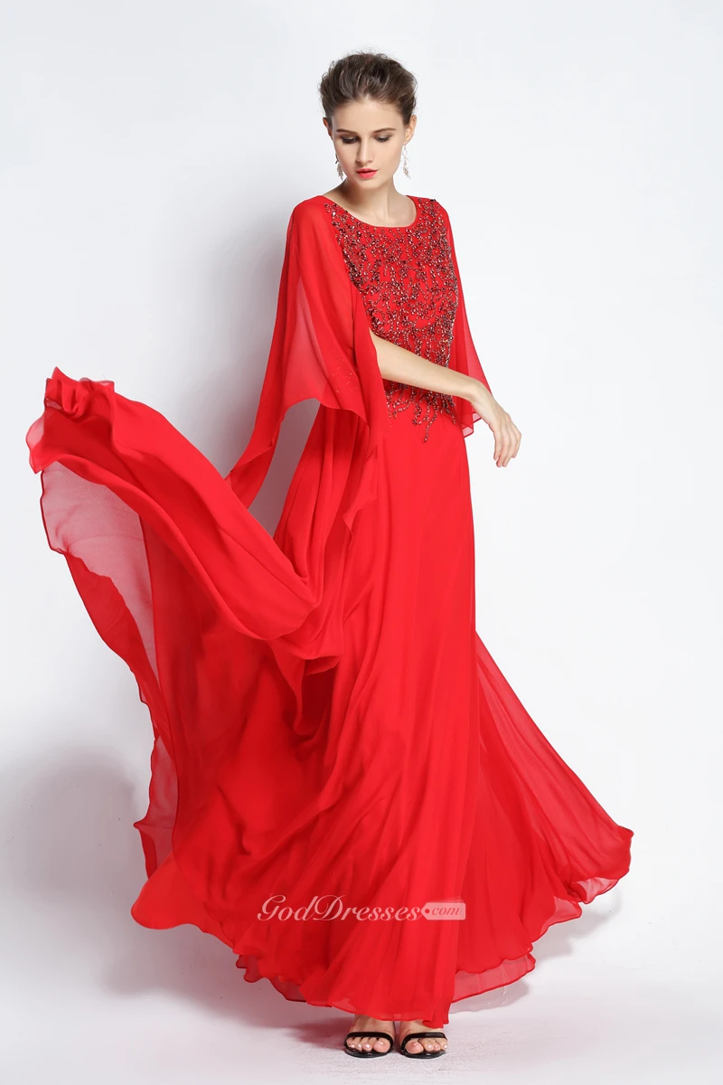 A-Line Floor-length Jewel Chiffon Long Sleeve Prom Dress with Beading and Pleats